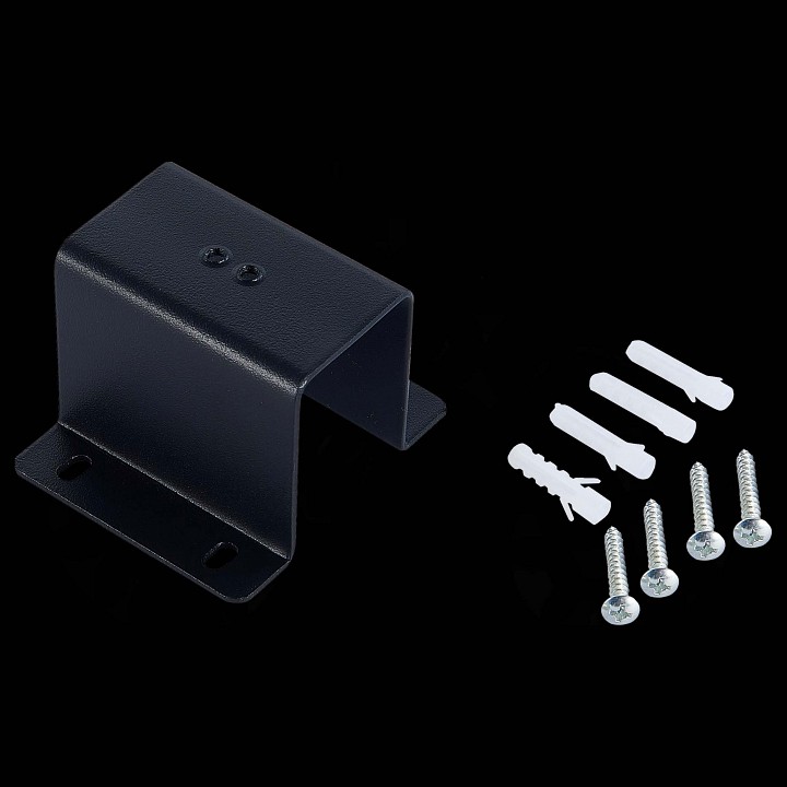 Перед нами монтажное крепление для трека, которое фиксирует профиль Skyline 220 к потолку или стене. В системе ST-Luce коллекции Skyline 220 этот металлический кронштейн принимает на себя нагрузку от шинопровода и установленных светильников, обеспечивая жёсткую посадку без смещения. При устройстве основного света на трековой системе крепление устанавливается на шурупы в основание, после чего профиль защёлкивается или фиксируется в нём, и линия остаётся ровной даже при перемещении светильников вдоль направляющей. Размер 69×37×48 мм рассчитан под сечение трека, поэтому узел не выступает за его контур и сохраняет аккуратную геометрию. Металлический корпус повышает прочность и устойчивость к нагрузкам, класс электробезопасности I учитывает подключение к сети 220 В. Матовое чёрное покрытие делает крепление визуально нейтральным в составе всей системы.