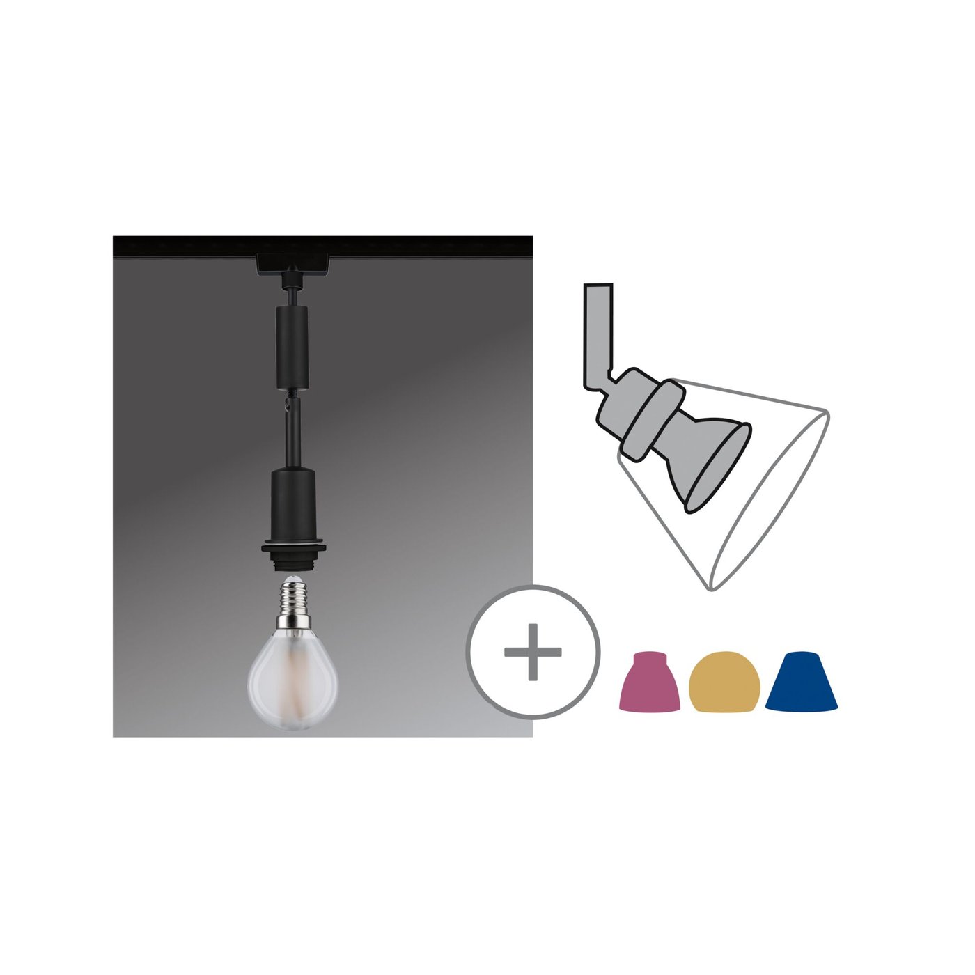 🆔 Подвесной светильник на шнуре с открытой лампой для однофазного трека черный Decosystems by Paulmann