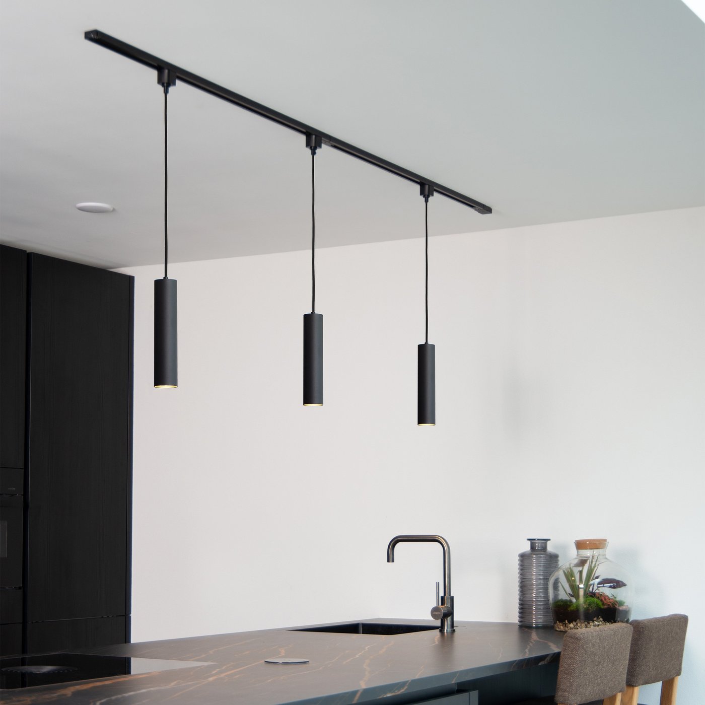 🆔 Трековый подвесной светильник с цилиндрическим корпусом чёрного цвета для однофазного шинопровода черный TRACK by Lucide