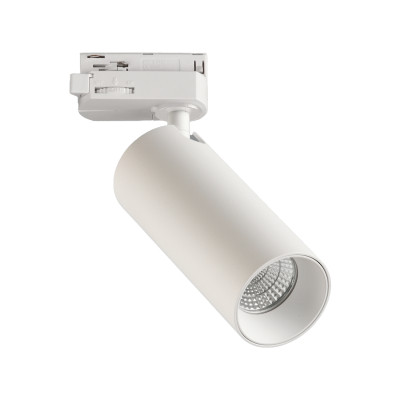 трековый прожектор белого цвета с регулируемым углом для трёхфазного шинопровода