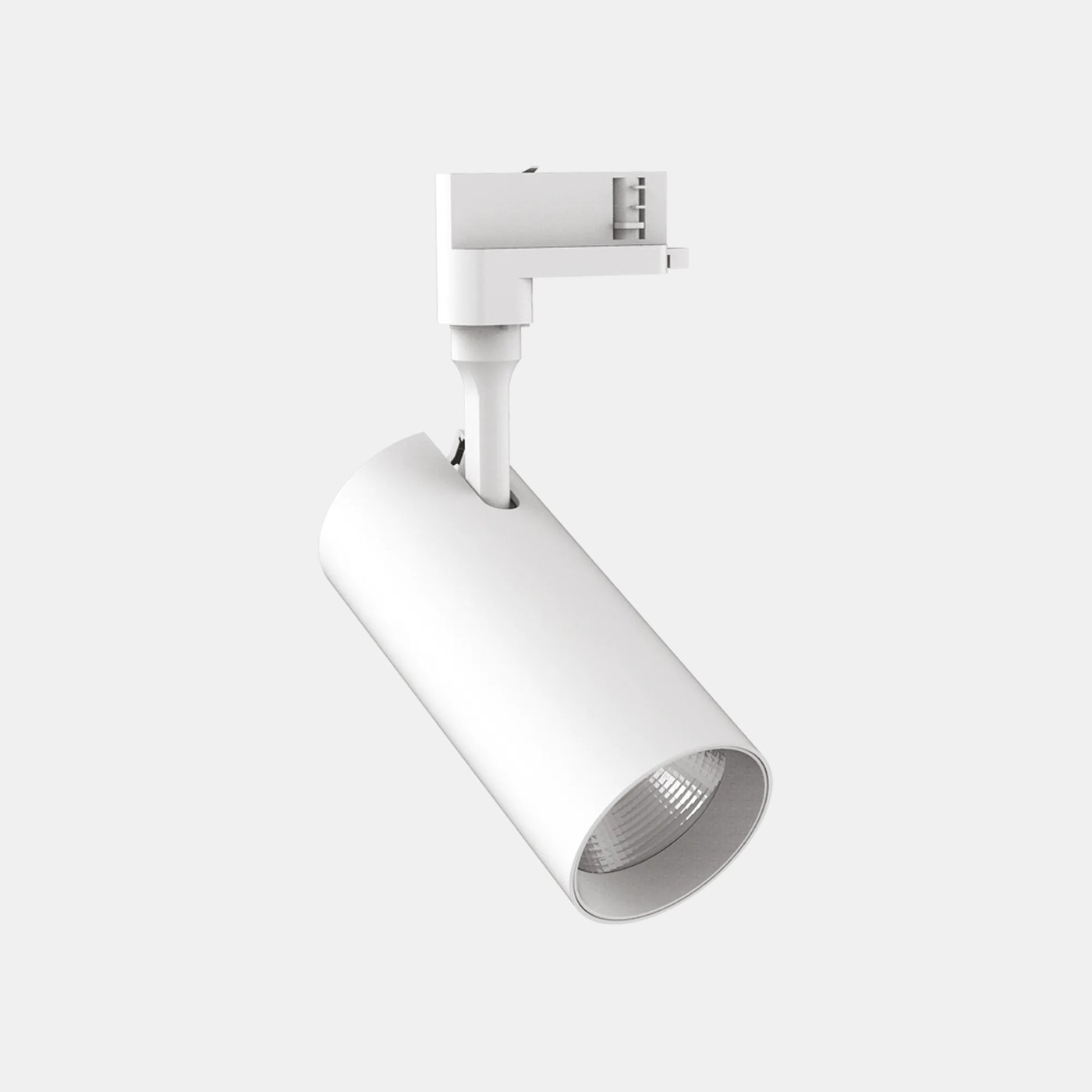 трековый светильник белого цвета с цилиндрическим корпусом и углом освещения 24° для трехфазного шинопровода