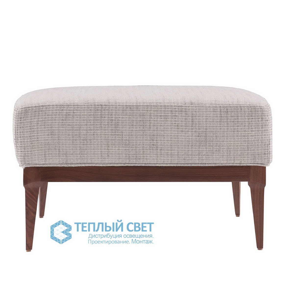 пуф с обивкой из светлой ткани с геометрическим рисунком и деревянными ножками