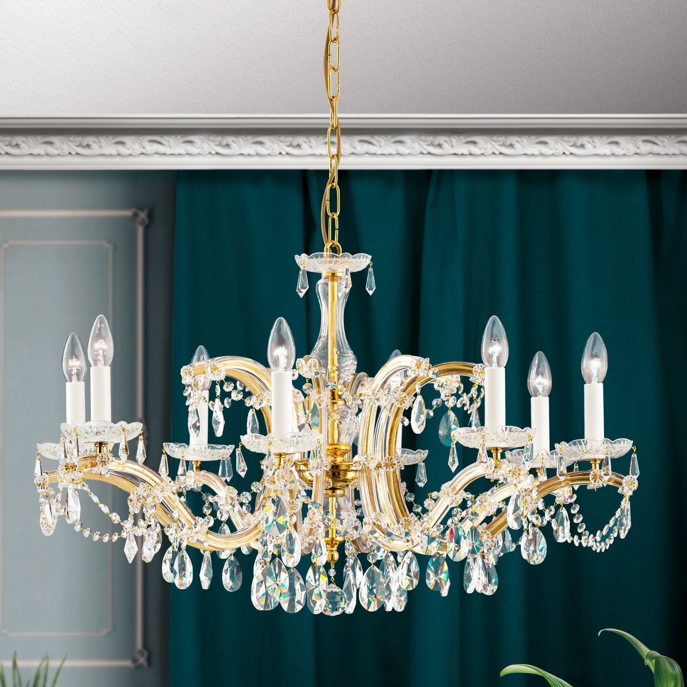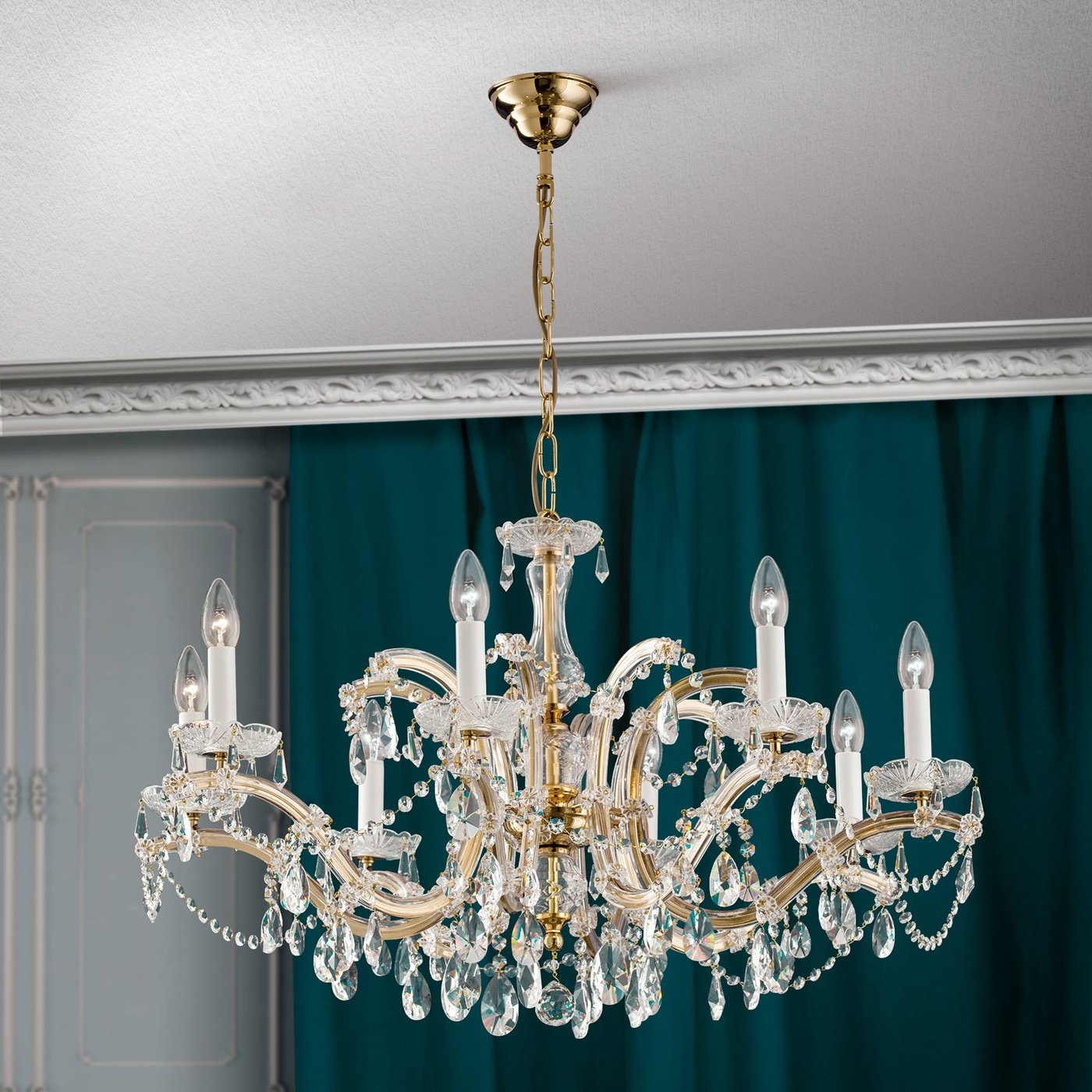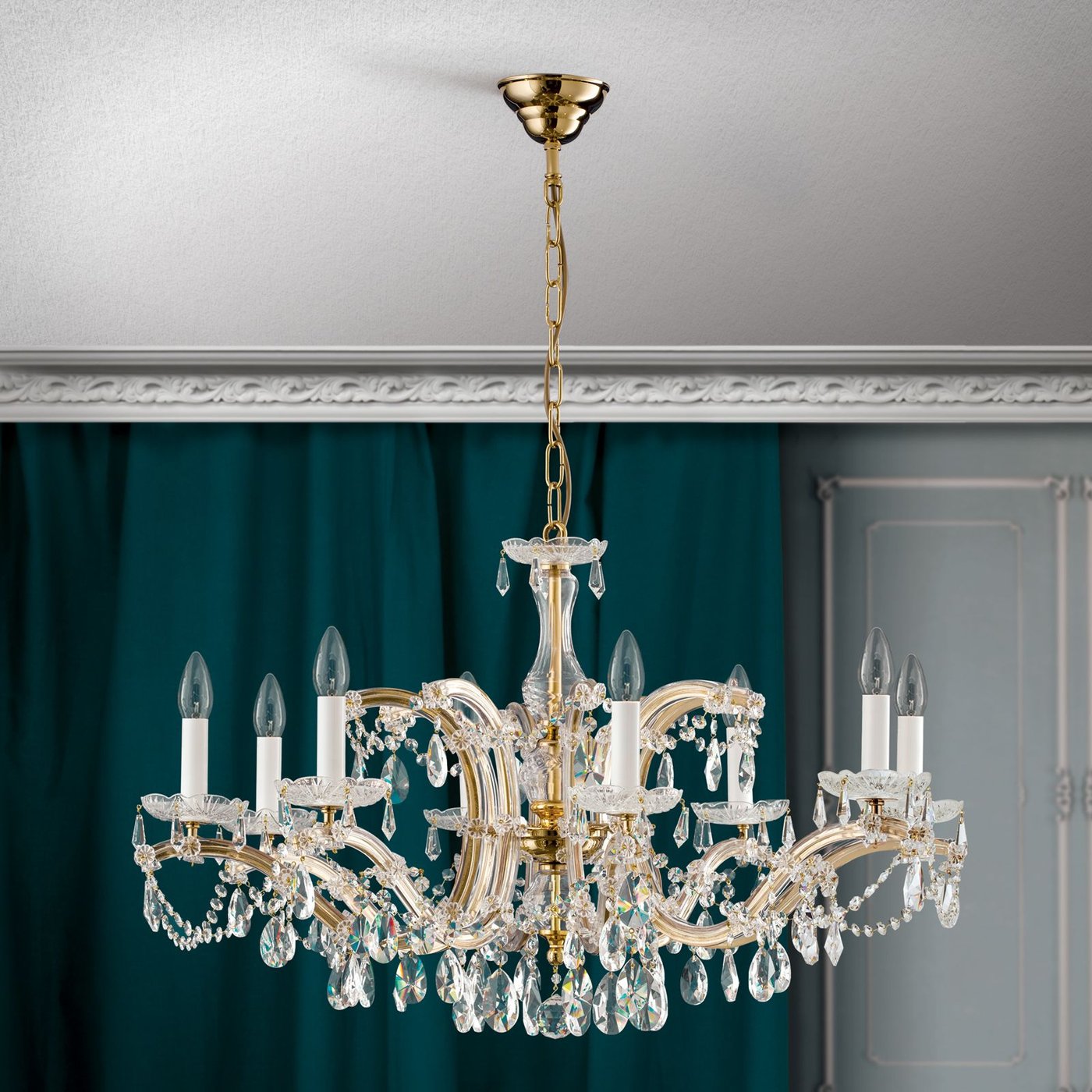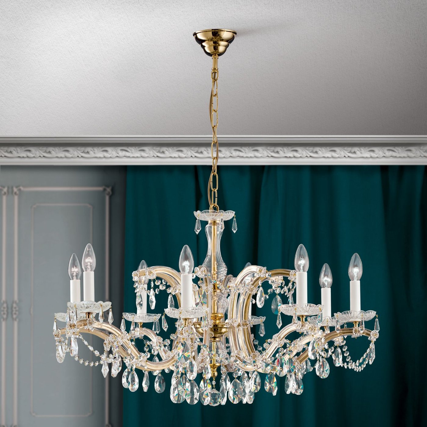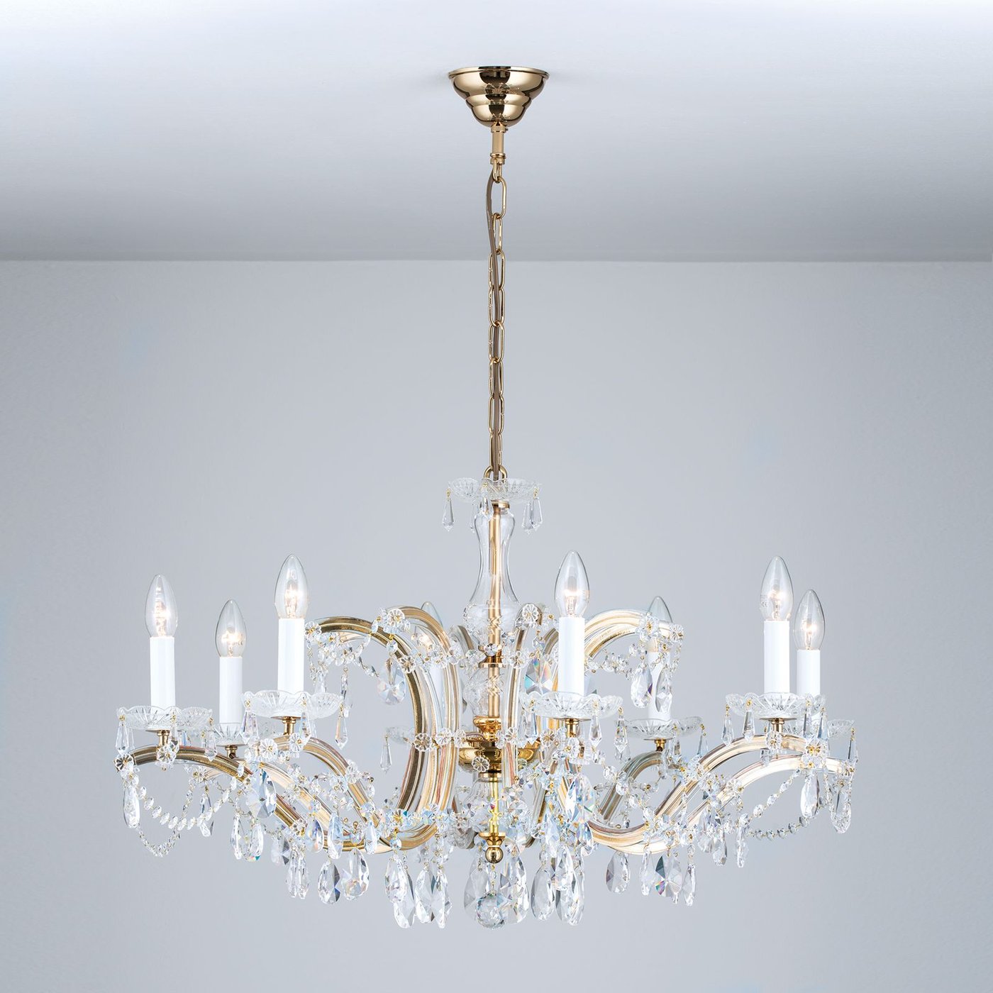 Crystal chandelier MARIA THERESIA, 8-flames, gold