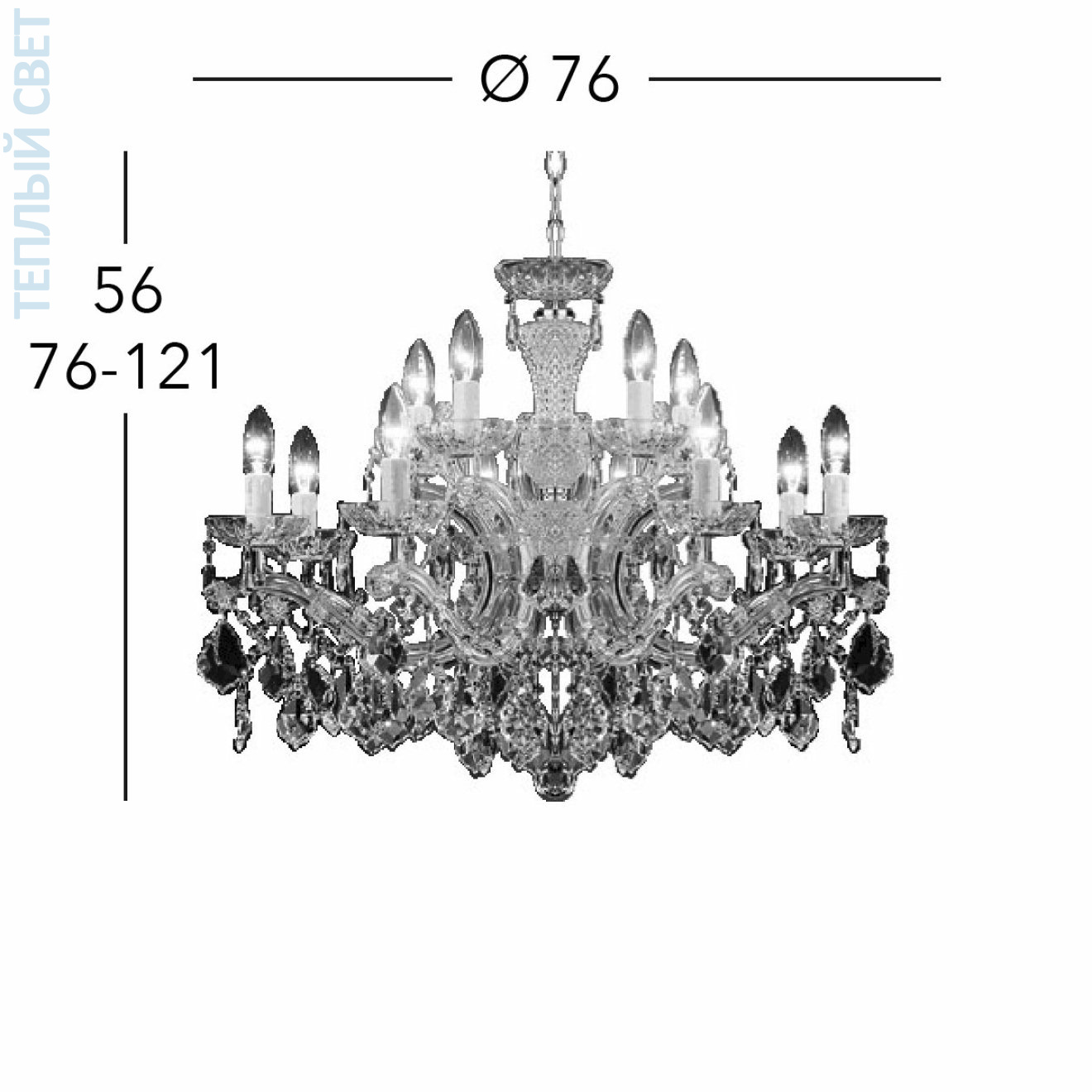 Золото 24 карата, Ø76cm, Высота 56cm, Мин. высота 76cm, Макс. высота 121cm, 12 ламп, E14