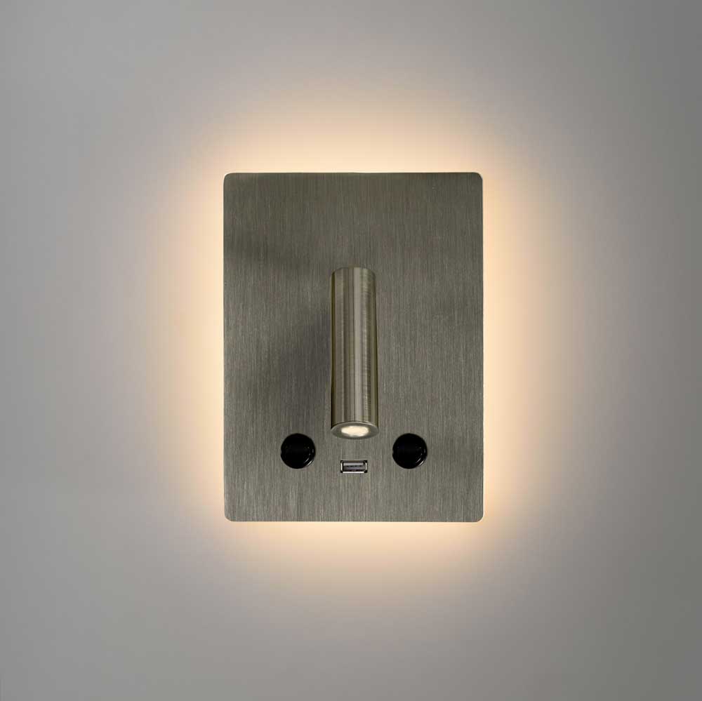 ACB Iluminacion Манат 16/3568 Настенный Светильник Сб. Никель, Светодиод 1x12Вт 3000К 970лм + Светодиод 1x3Вт 3000К 315лмI, Встроенный светодиод, Два переключателя, Регулируемый, С USB