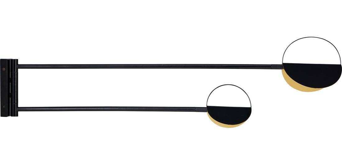 Светодиодный бра с двумя светильниками из коллекции Leaves под редакцией Bolia, состоящей из настенного основания и двух поворотных трубчатых кронштейнов, украшенных двумя диффузорами из гнутого металла.
