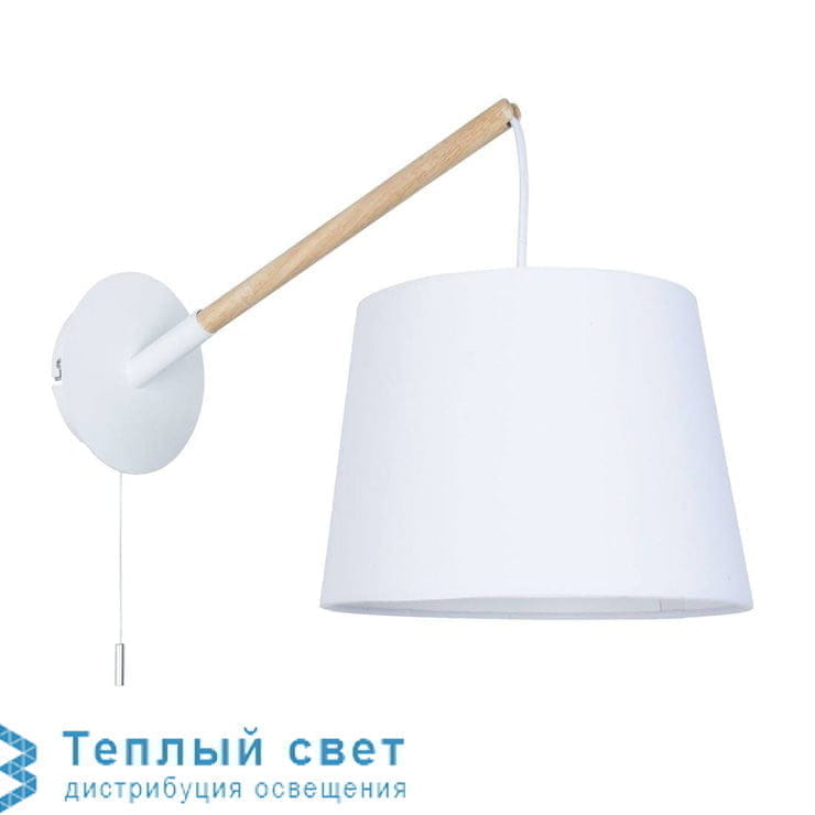 Аппликация коллекции Corep Scandi, состоящая из металлической круглой металлической настенной монтажной основы с расключением, трубчатой рукой в легкой древесине и тренированный барабанный оттенок. Хлопок.