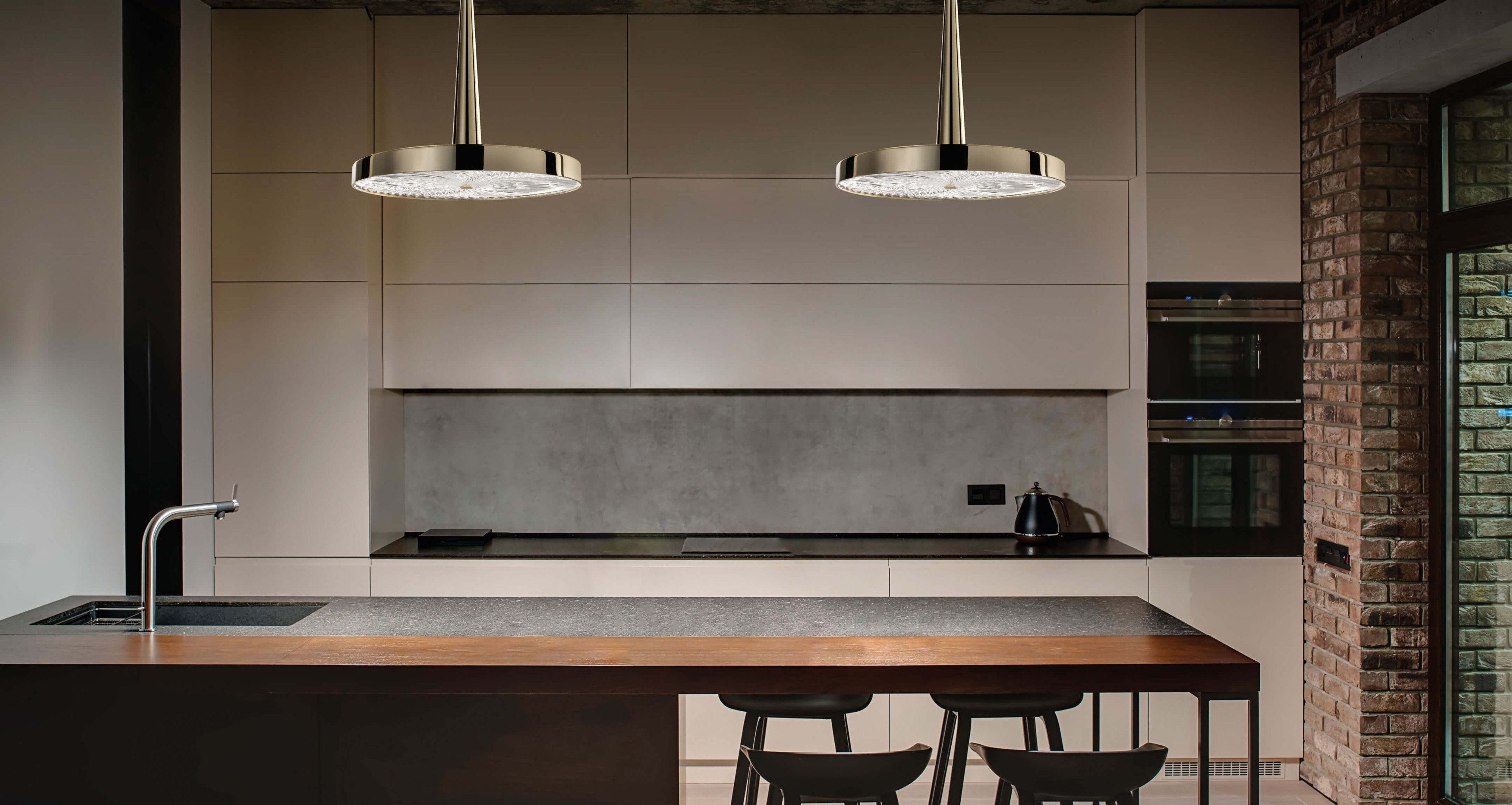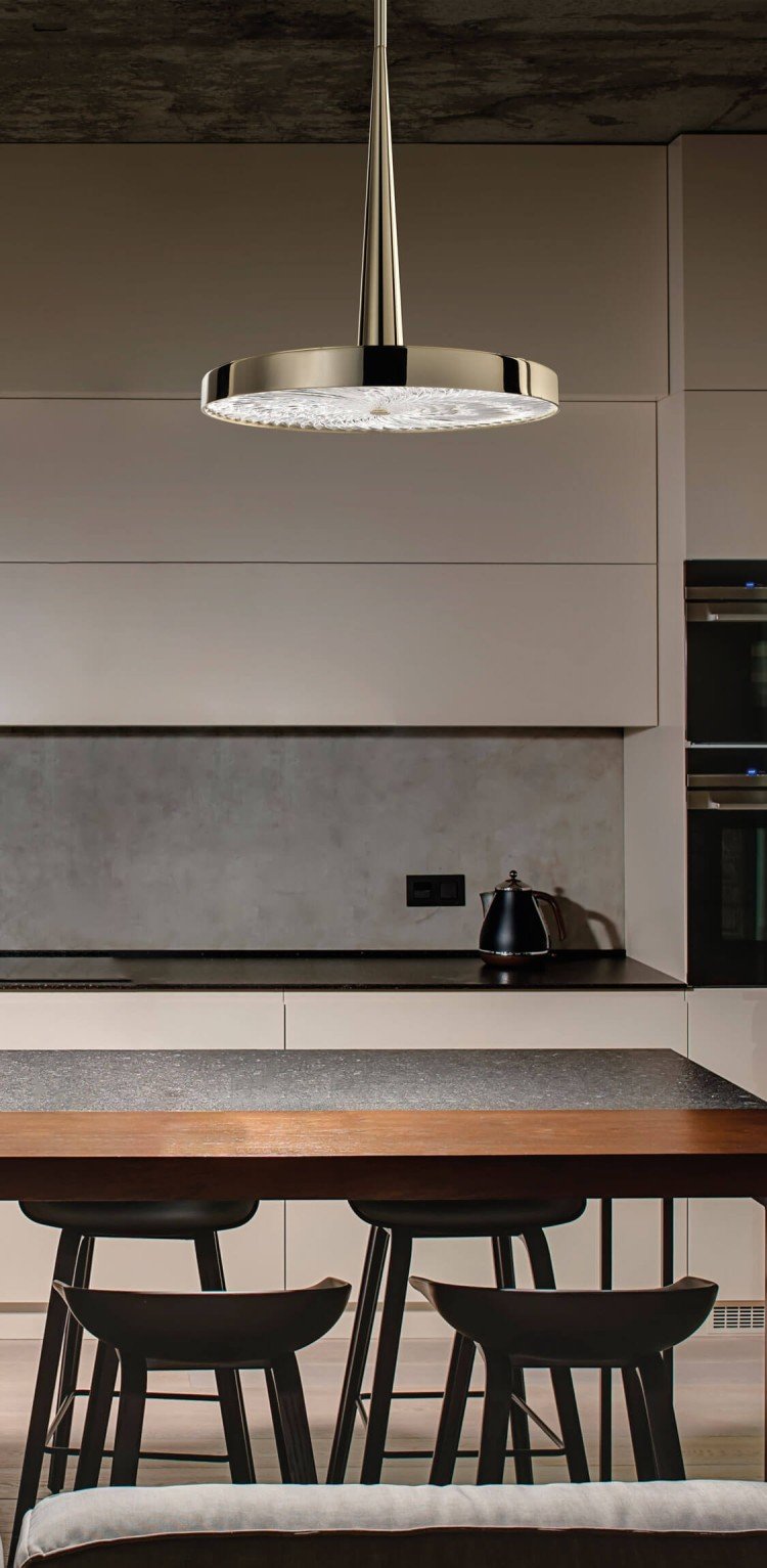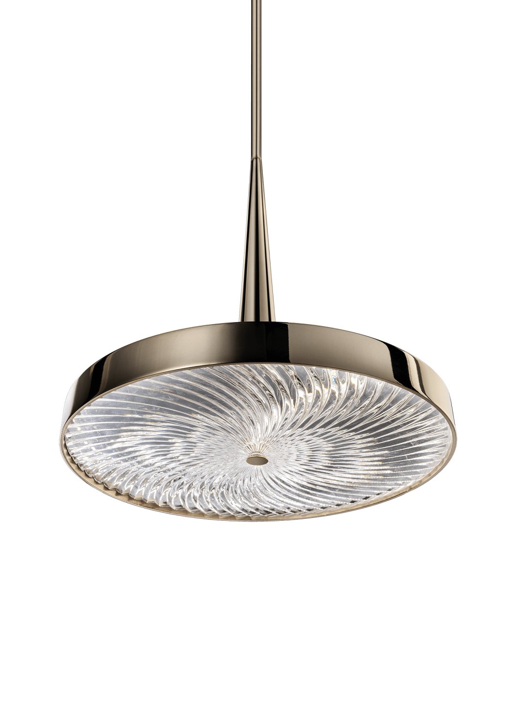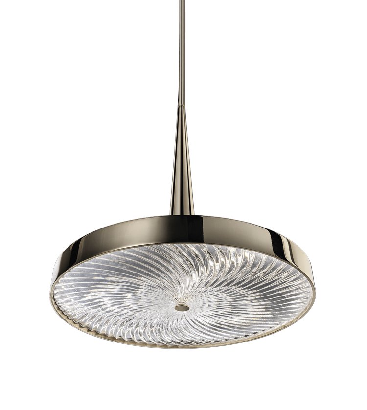 Ritmico — это подвесной светильник, в котором простое сочетание стекла и металла превращает лампу в настоящее украшение. Рассеиватель из прозрачного хрусталя, вырезанный вручную, излучает свет, в котором переплетаются тени и полутона.