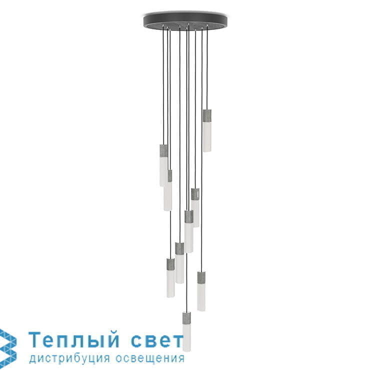 Эта подвеска простой конструкции, разработанная Талой, состоит из круглой черной потолочной розетки, шнура плетеного текстильного черный длиной 400 см и новые цилиндрические диффузоры из литой латуни; пескоструйное и выдувное полупрозрачное боросиликатное стекло к рот.