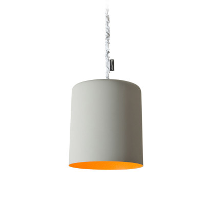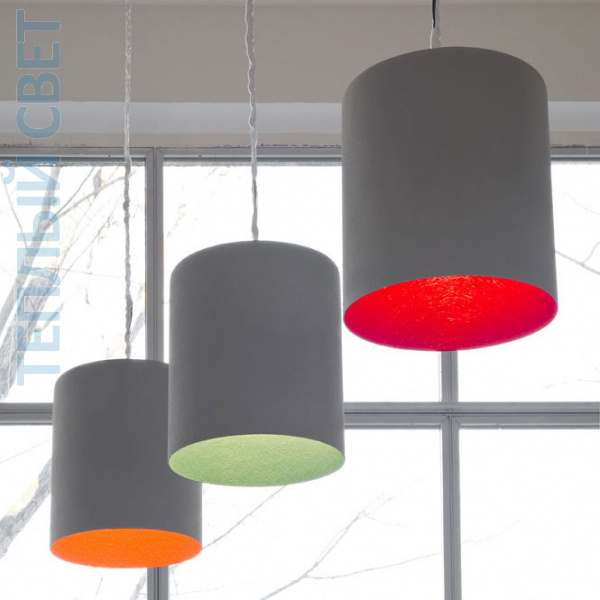 Подвесной светильник. Контраст между внешней поверхностью, покрытой цементной краской, и внутренней, выполненной из цветного материала Nebulite® (материала на основе смолы и волокна). Цвета внутренней отделки на выбор: белый, красный, бирюзовый, оранжевый, золотой. Диаметр 12 см. Провод: лапрен, нейлон. Сделано в Италии.