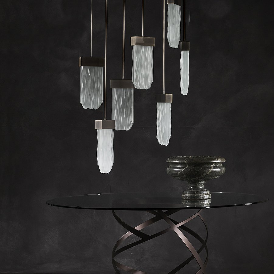 Классическое романтическое изображение луны, освещающей рябь на воде. Мы разработали способ плавления, сплавления и создания идеальной трёхмерной иллюстрации этого пейзажа в стекле. Волны на стекле словно колышутся и пульсируют, когда свет падает на застывшие волны. Всё это обрамлено лаконичным, гладким металлом, который не отвлекает взгляд от игры света внутри. Чтобы сохранить изображение именно таким, каким мы его себе представляли, стекло доступно только в сатинированной отделке, но металлические детали могут быть выполнены в других наших фирменных вариантах отделки: «Шлифованное золото», «Шлифованный никель» или «Шлифованная тёмная бронза», чтобы тонко подчеркнуть облик этих уникальных дизайнов. Этот светильник входит в коллекцию Moonlight.