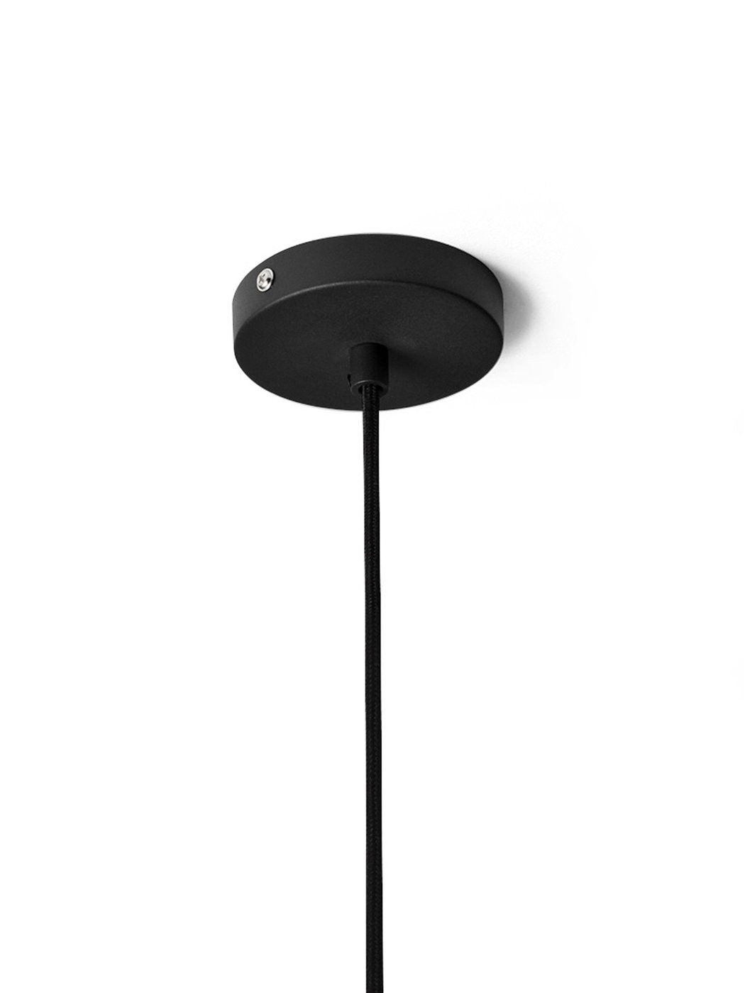 Подвесной светильник из коллекции Collect под редакцией Ferm Living, состоящий из железного патрона с порошковым покрытием, латунного кольца и металлического тканевого кабеля питания.