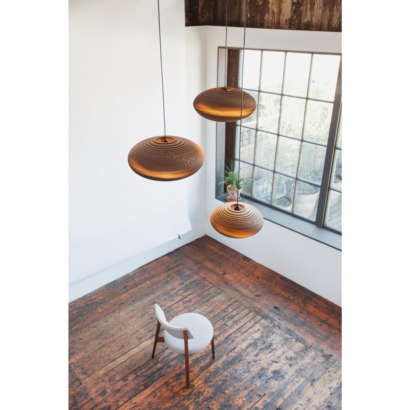Коллекция Disc от бренда Graypants - это эксклюзивные подвесные светильники, созданные из переработанных картона, в сочетании с современными технологиями проектирования. Дизайнеры бренда использовали инновационные методы изготовления и обработки материала, чтобы создать эти элегантные, геометрические светильники. Внутренняя поверхность каждого светильника покрыта металлическими элементами, что обеспечивает яркий и чистый свет, который направлен вниз. Эта коллекция светильников, изготовленных вручную, является прекрасным примером экологически ответственного дизайна, который воплощает современную эстетику и экологически чистые технологии.