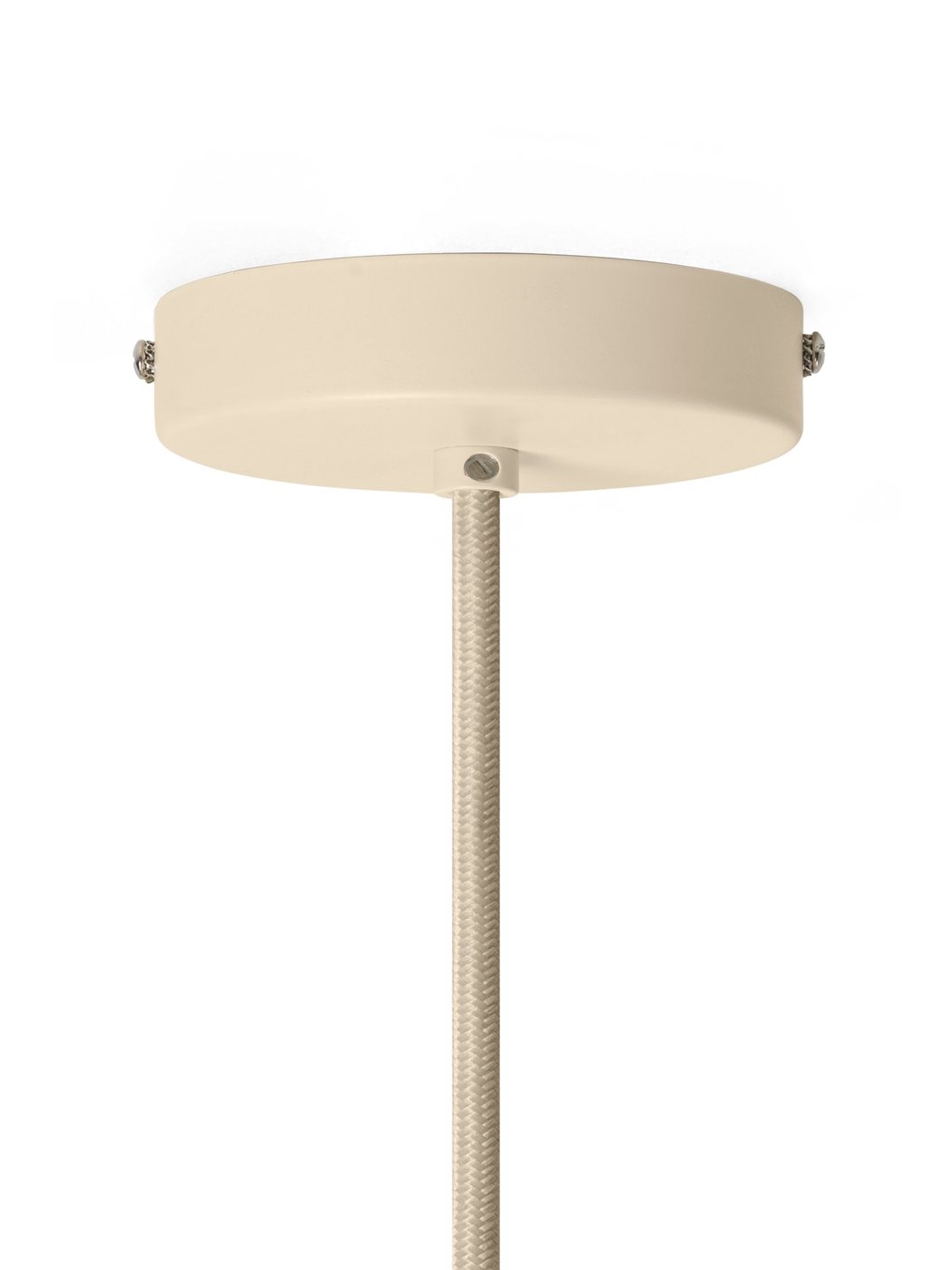 Железо с порошковым покрытием. Белое опаловое стекло. Цоколь E27. Тканевый шнур длиной 5 метров соответствующего цвета.