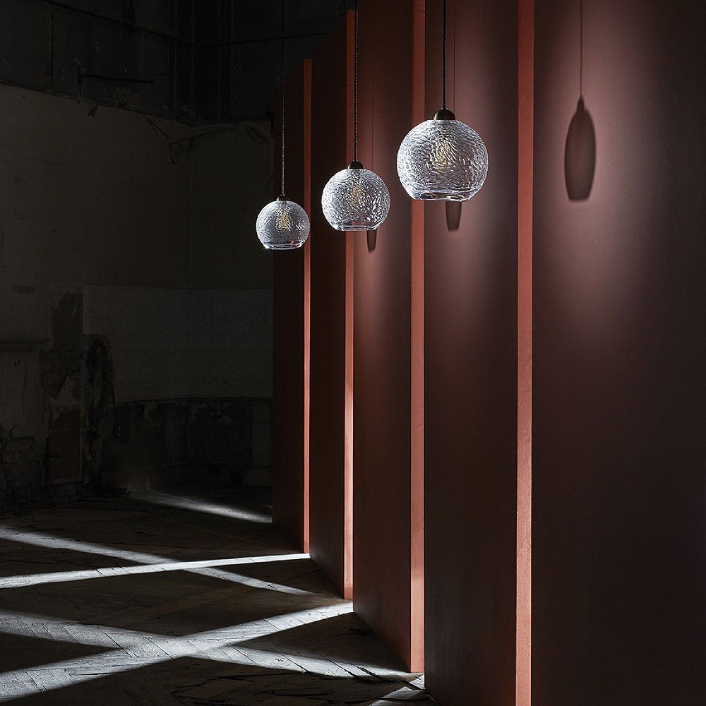 🆔 Подвесной светильник с рельефным плафоном из прозрачного стекла Glacier by Bella Figura