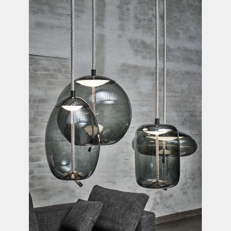 Узел - серия величественных суспензий. Смесь округлых кривых взорного стекла и экономии расширенной породистой веревки дают реальную личность этих светильников. Светодиодный источник света скрыт под металлическим капюшоном. Мы представляем на этом сайте выбор моделей. Эти красивые суспензии, естественно, находят свое место в гостиной или в столовой.