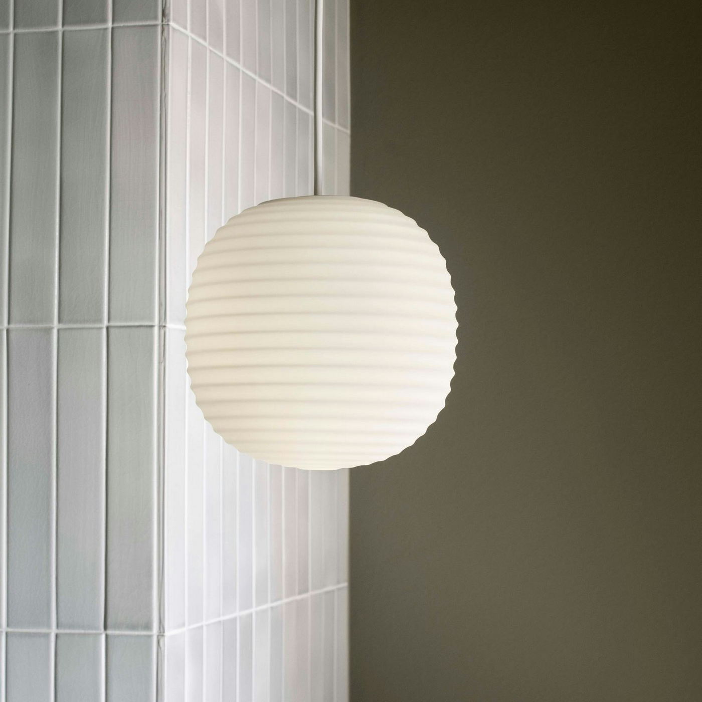🆔 Подвесной светильник с рифлёным сферическим плафоном из матового стекла белый Lantern by New Works