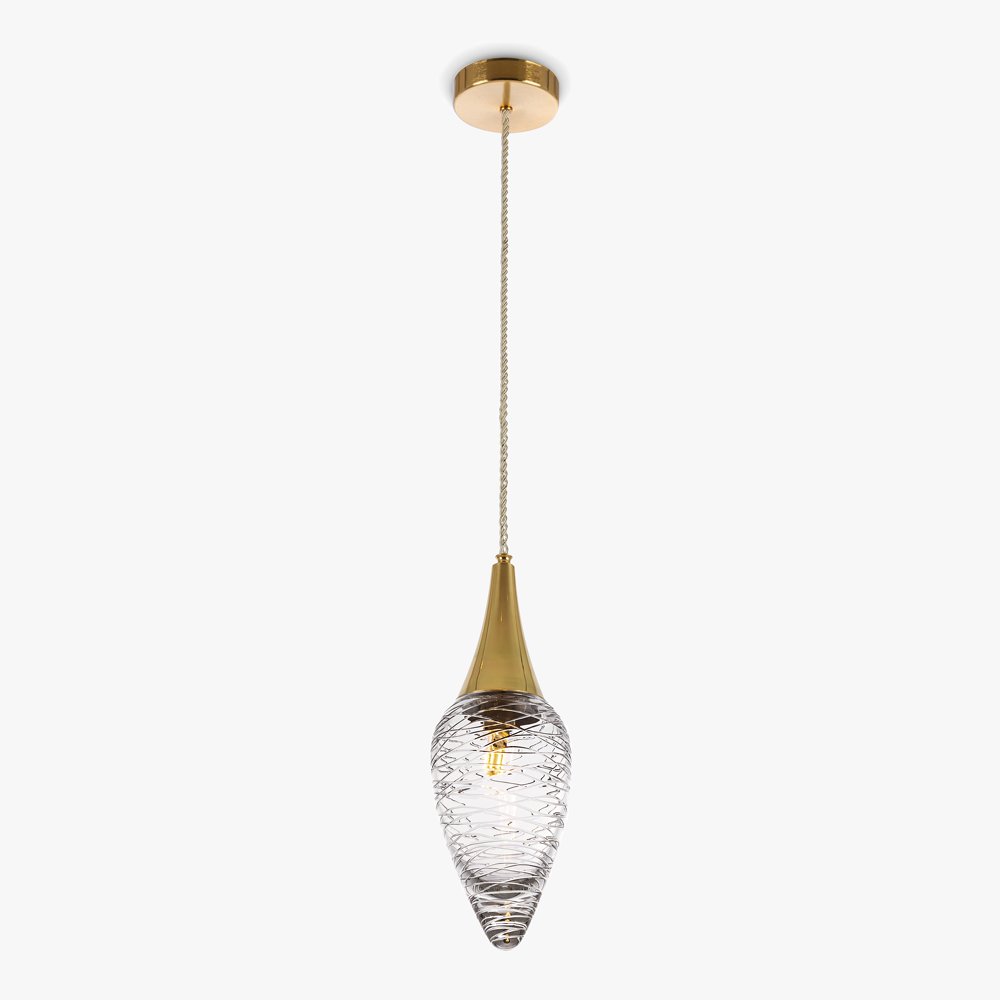 Подвесной светильник с одиночным плафоном каплевидной формы выполнен из прозрачного хрусталя с выраженной фактурой поверхности, подвешен на кабеле к компактному потолочному основанию. Верхняя часть плафона оформлена металлическим элементом, который соединяет стеклянный объём с подвесом и формирует переход от крепления к световой части. Модель Bella Figura из коллекции Lavalier с артикулом CL378-5 рассчитана на пять светодиодных ламп с цоколем G9 мощностью по 5 Вт, диаметр составляет 30 см, высота — 31 см. Конструкция ориентирована на использование как одиночного подвеса или в группе, где важна форма плафона и работа света через прозрачный материал.