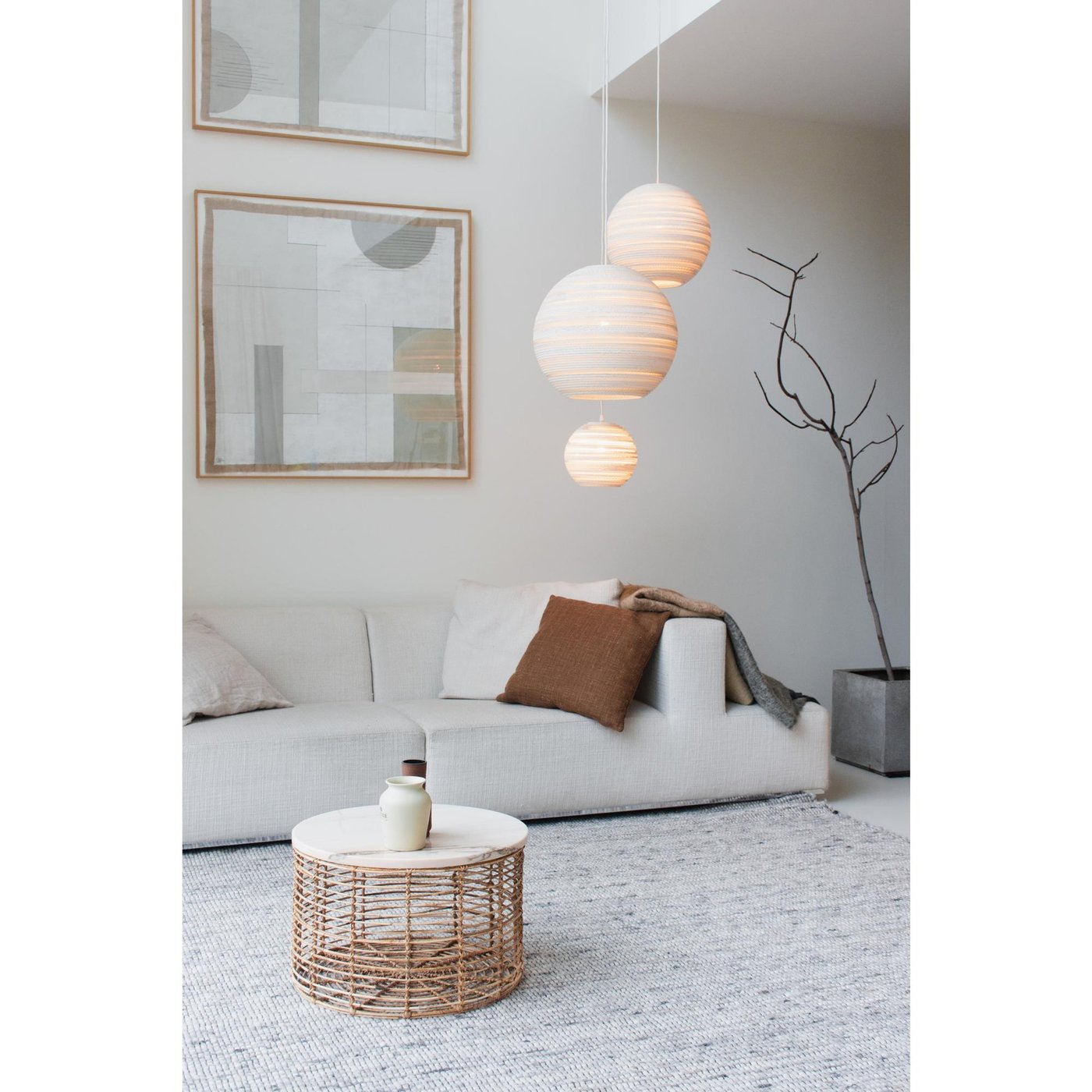 Подвесной светильник Graypants Moon - это уникальное и красивое сочетание традиционных техник производства и современных материалов. Он создает теплую и уютную атмосферу в комнате, а также станет прекрасным дополнением к современному интерьеру.