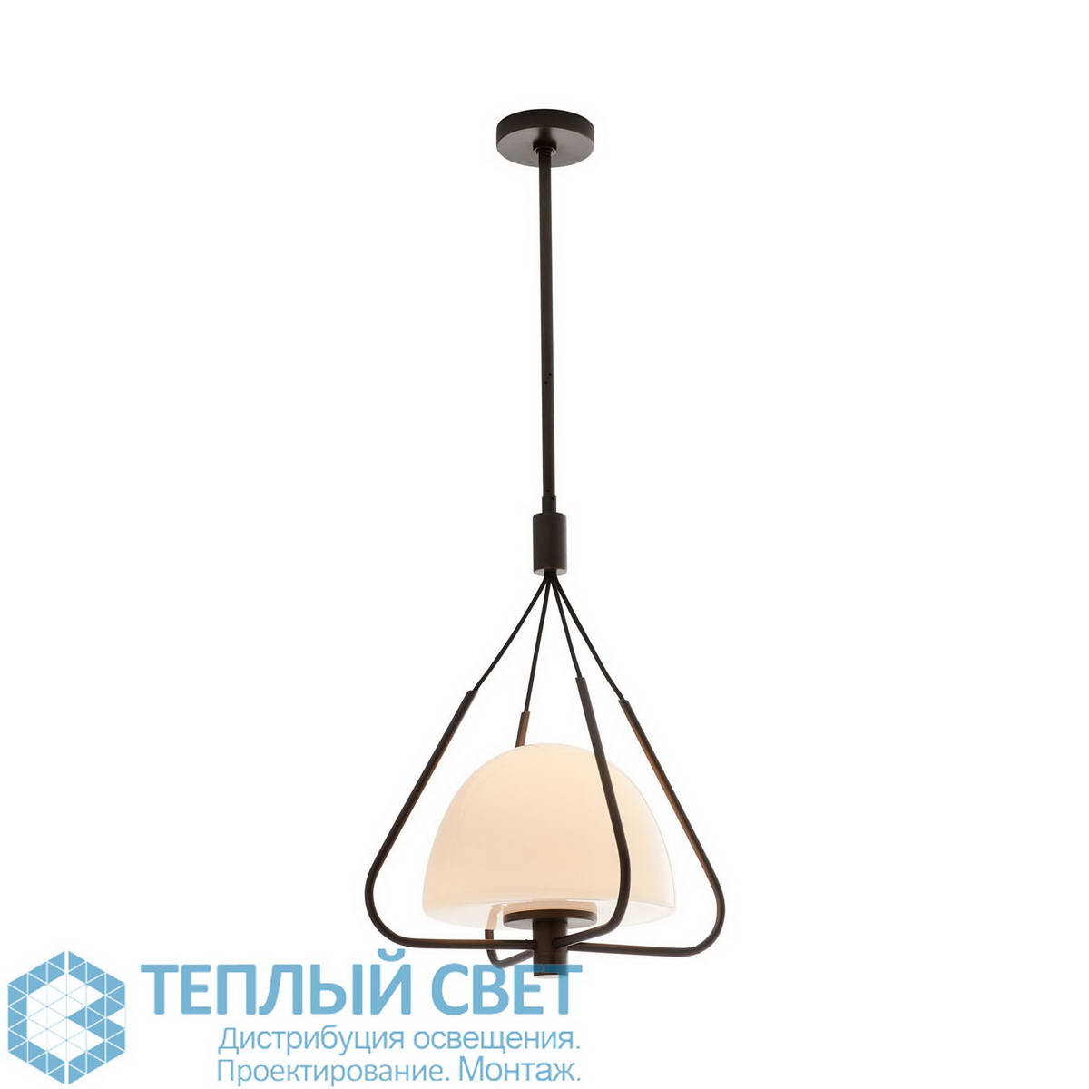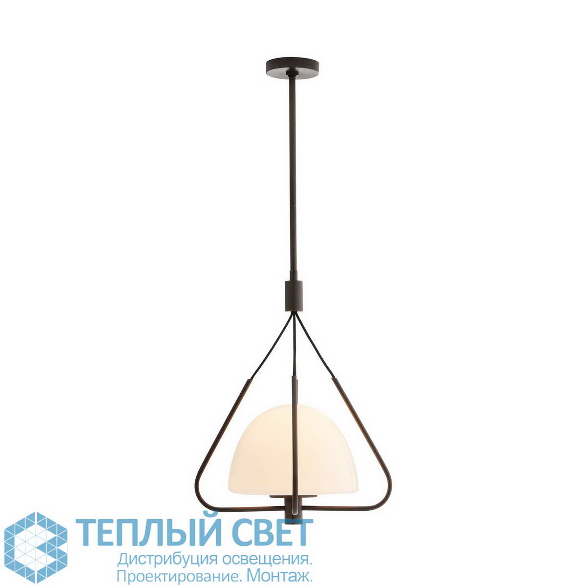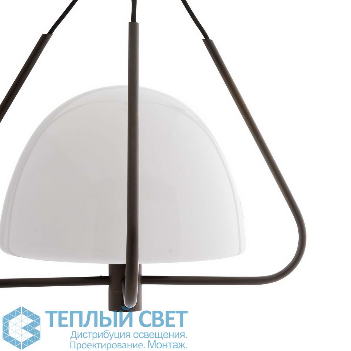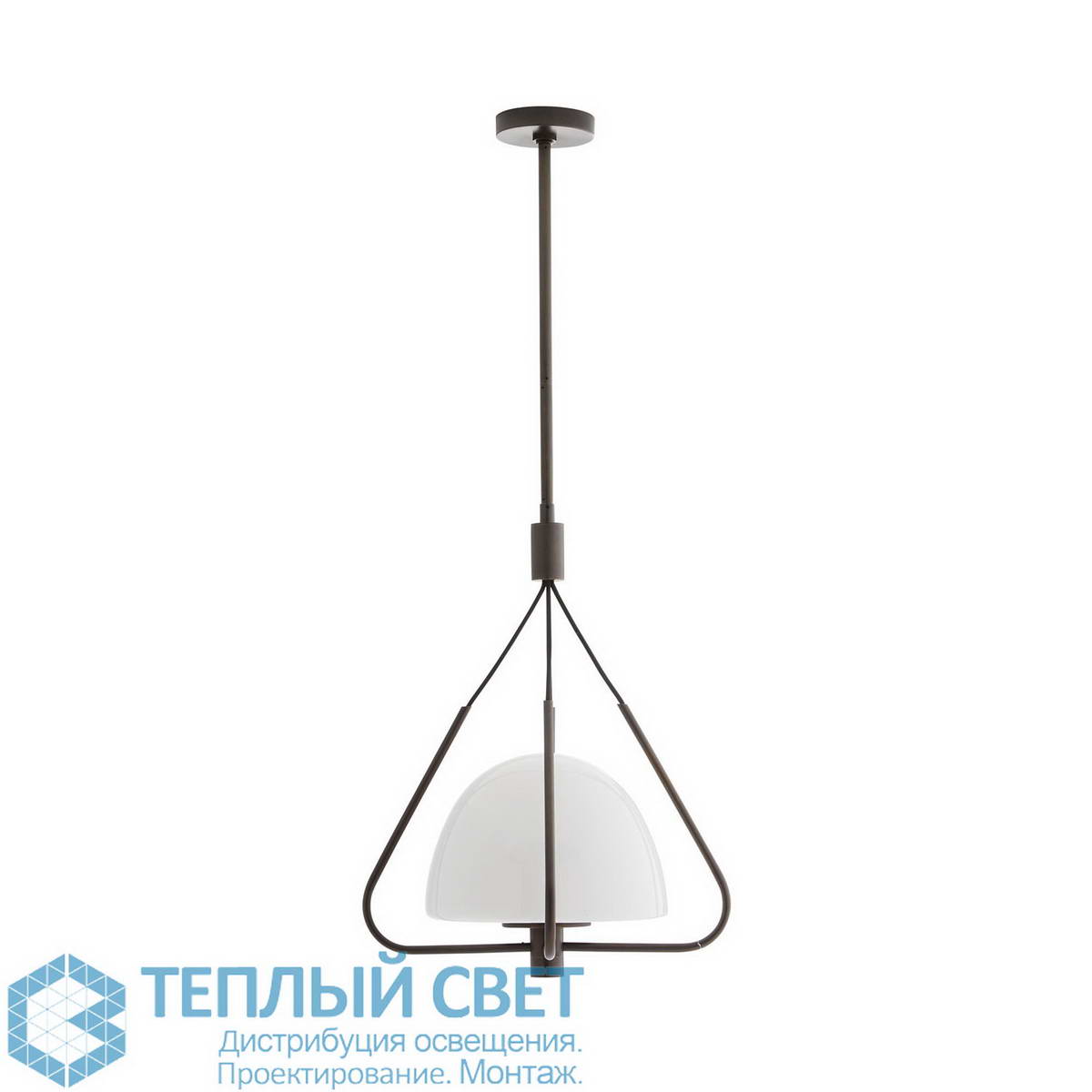 подвесной светильник с треугольной рамой и шарообразным стеклянным плафоном