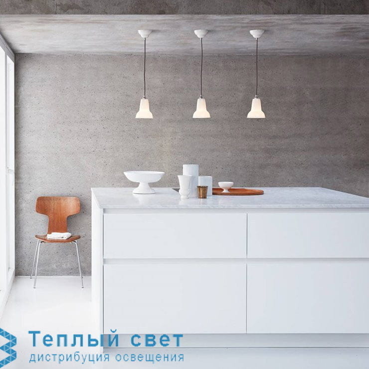Подвесной светильник из коллекции Original 1227 Mini, состоящий из потолочной розетки и хромированной розетки, шнура питания в оплетке поддерживает абажур бомбы из из керамики.