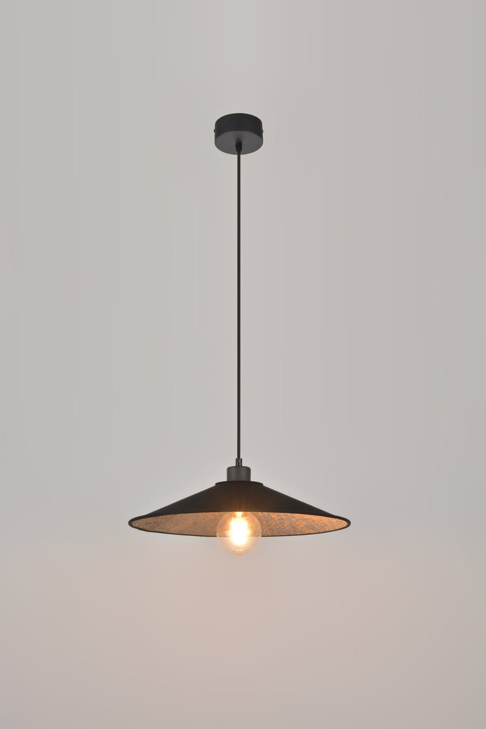подвесной светильник с металлическим плафоном на длинном шнуре