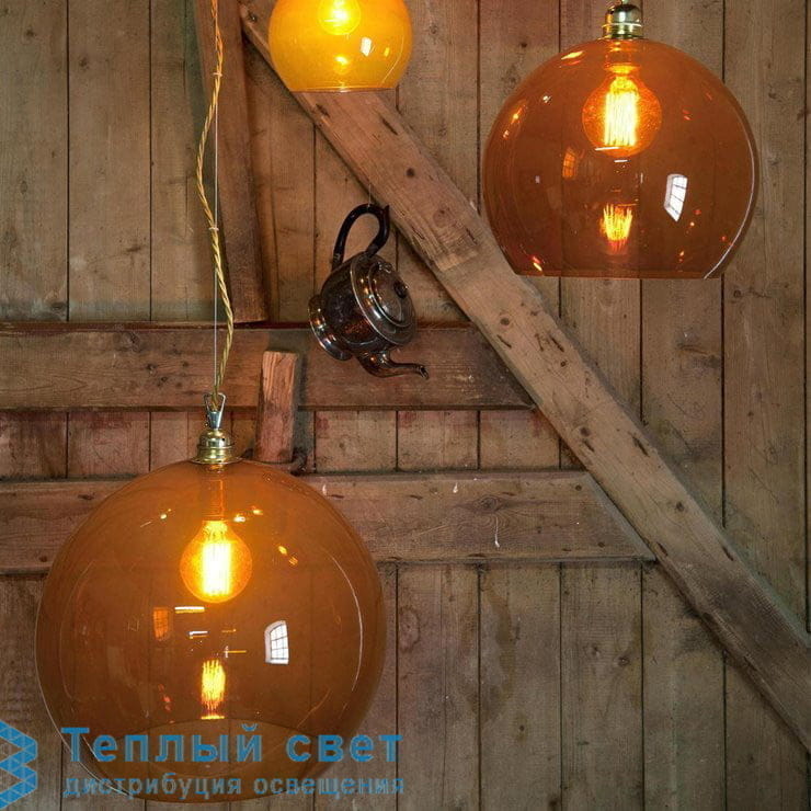 Подвесной светильник большого формата из коллекции Rowan, состоящий из потолочной розетки, шнура питания с текстильной оберткой и сферического рассеивателя из дутого стекла.