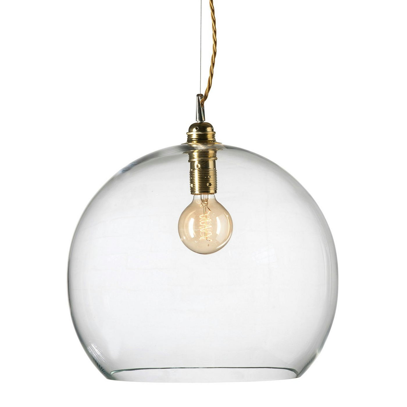 подвесной светильник с прозрачным стеклянным плафоном и латунным подвесом