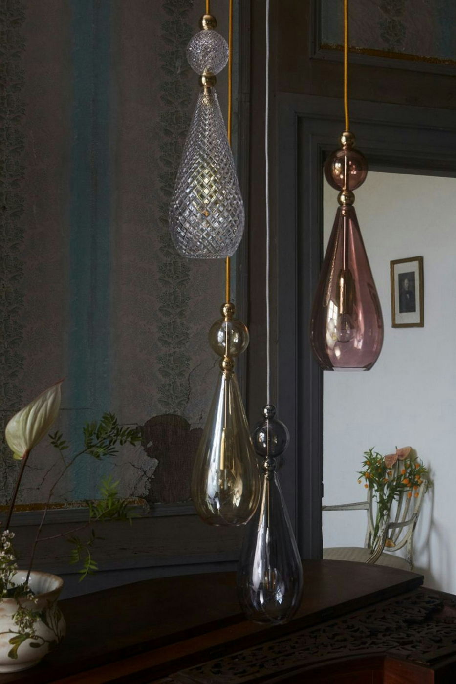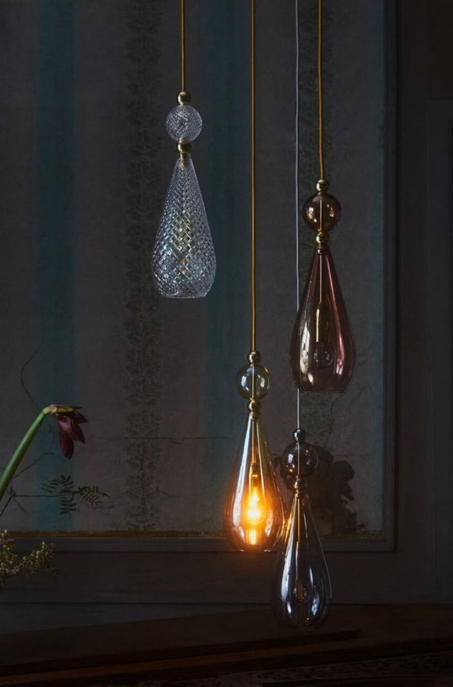 🆔 Подвесной светильник каплевидной формы из стекла с золотистой фурнитурой Smykke by Ebb and Flow