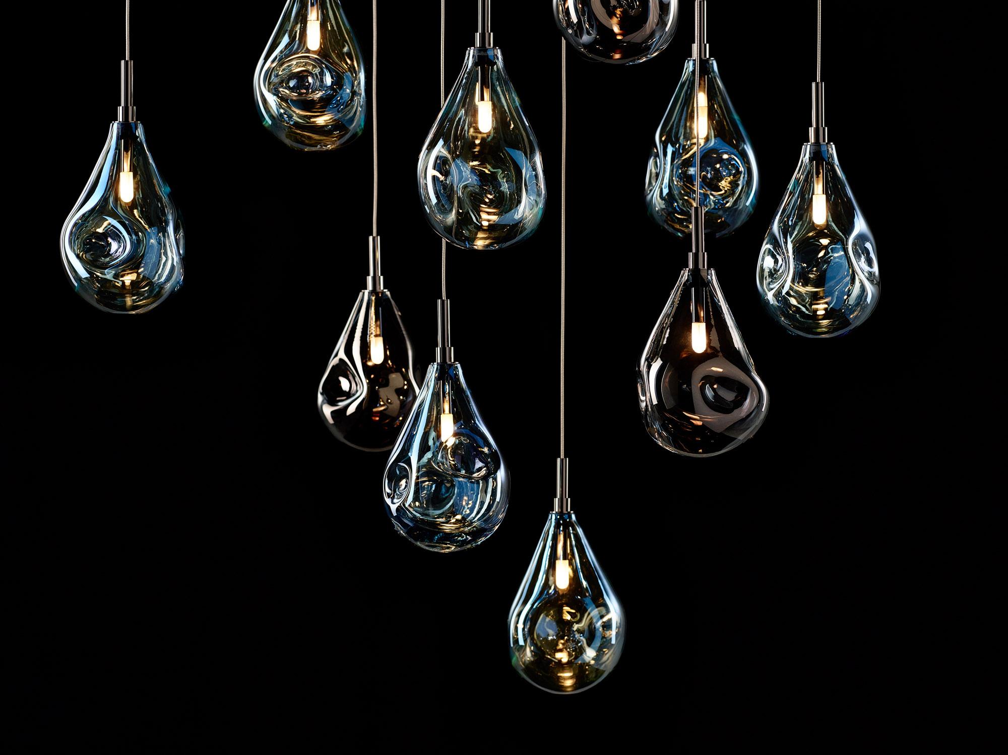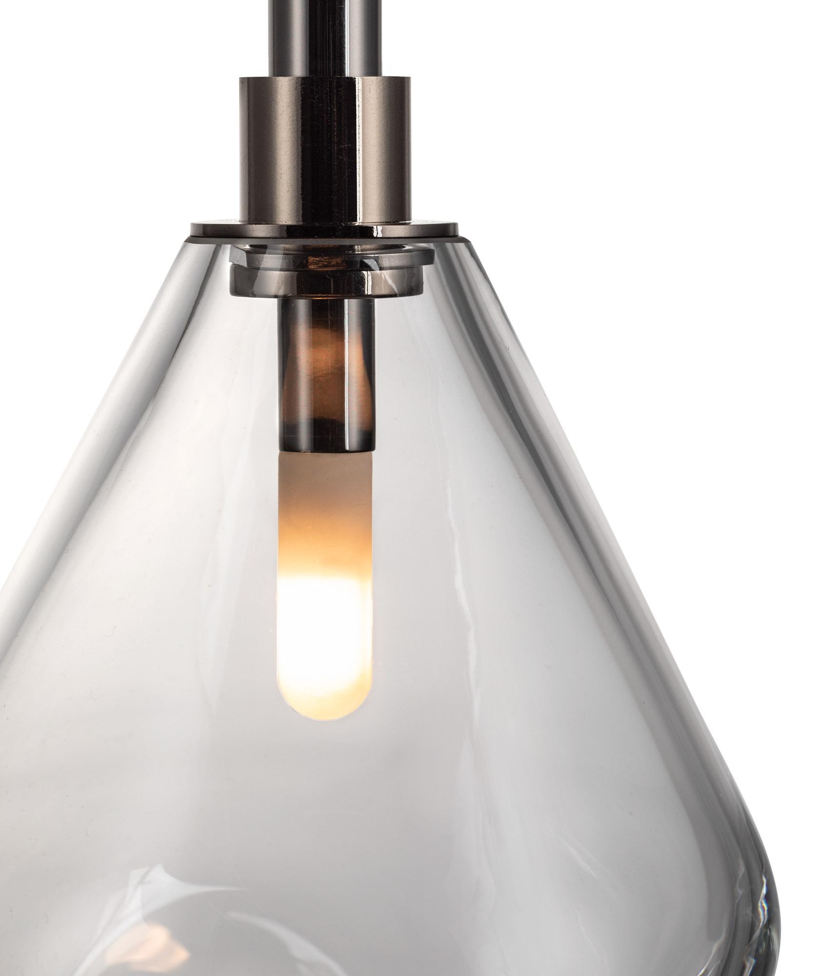 Подвесной светильник Soap mini pendant из коллекции Soap выполнен в формате компактного одиночного подвеса с плафоном из выдувного хрусталя серебряного оттенка и фурнитурой антрацит. Основное в этой модели — стеклянный корпус каплевидной формы с мягким, несимметричным внутренним рельефом и открыто читаемым источником света внутри, поэтому светильник воспринимается как декоративный подвес, где важен не только свет, но и сама форма стекла. Производитель Bomma, артикул 1/60/95107I/A/600LS/135/A/ANT/2,5. Размеры 100 x 185 мм указывают на небольшой формат, подходящий для одиночного размещения или композиции из нескольких подвесов, что подтверждается дополнительным фото на карточке.