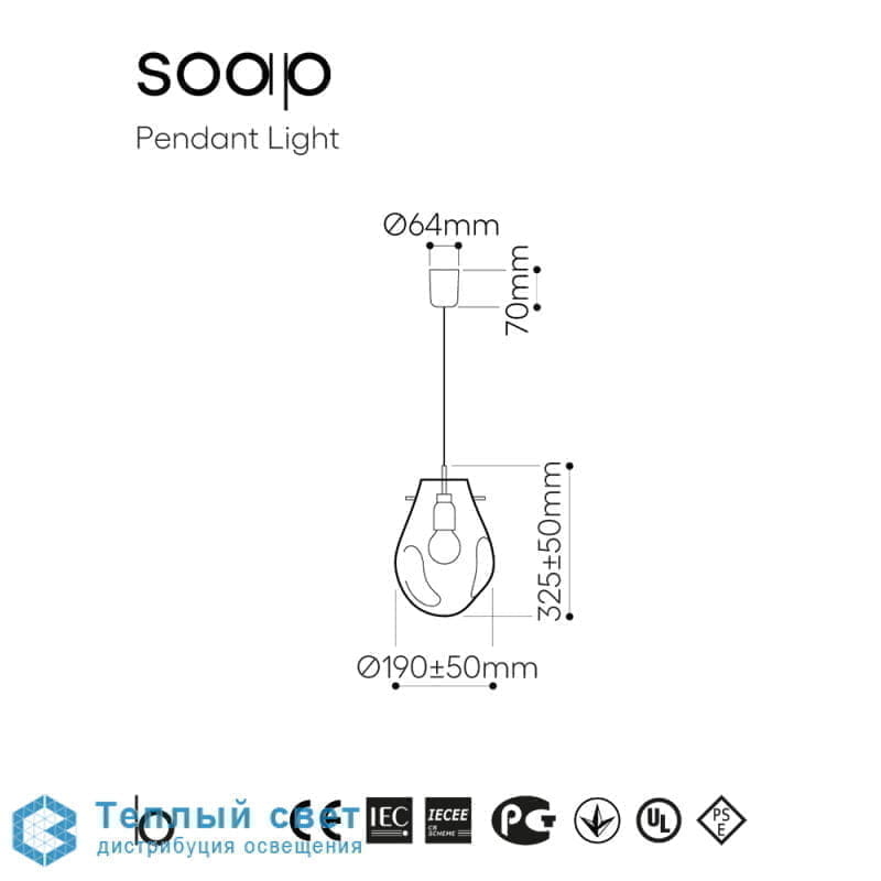 🆔 Подвесной светильник с малым каплевидным плафоном Soap by Bomma