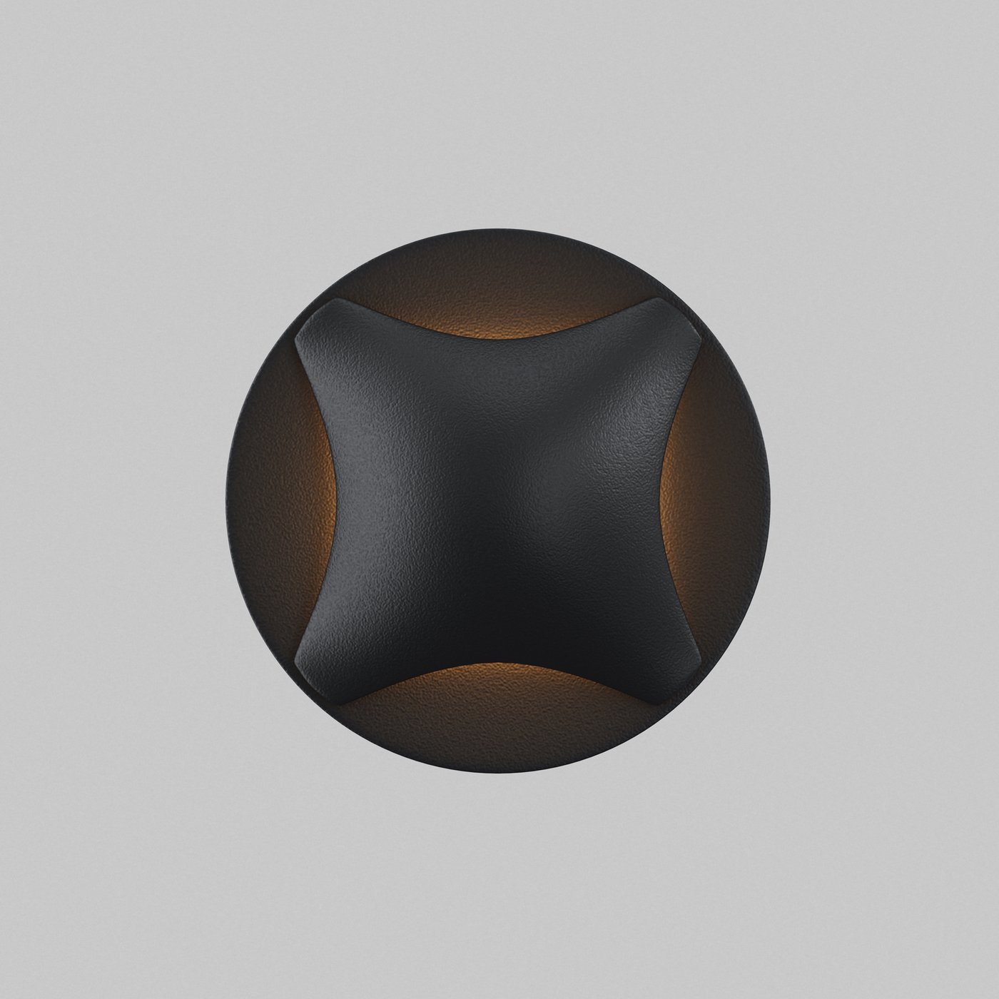 Встраиваемый светильник Biscotti выглядит как компактный тёмный акцент с выразительной пластикой, где форма работает не как декор, а как инструмент управления светом. Глубоко утопленный источник скрыт за отражателем, поэтому свечение появляется мягко, без ослепляющих точек, создавая ощущение спокойного ориентирующего света. Такая модель естественно воспринимается в архитектуре террас, входных групп, лестниц и садовых дорожек, а также в нишах и подступенках, где важно обозначить траекторию движения, не нарушая ночную атмосферу. Светильник встраивается в стену или пол и остаётся почти незаметным днём, проявляясь только с наступлением темноты. Встроенный светодиод мощностью 3 Вт даёт тёплый свет около 3000 К с умеренным потоком порядка 60 люмен, достаточным для навигации без избыточной яркости. Алюминиевый корпус рассчитан на уличные условия, а высокая степень защиты IP65 позволяет использовать его в зонах с влагой и перепадами погоды, сохраняя стабильную работу и аккуратный внешний вид.