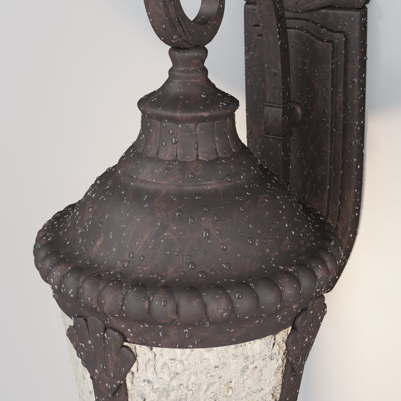 Материал корпуса – алюминий, цвет – античная бронза. Художественное литье. Плафон – прозрачное рельефное стекло. Классический дизайн. IP 44. Источник света – лампа с цоколем E27.