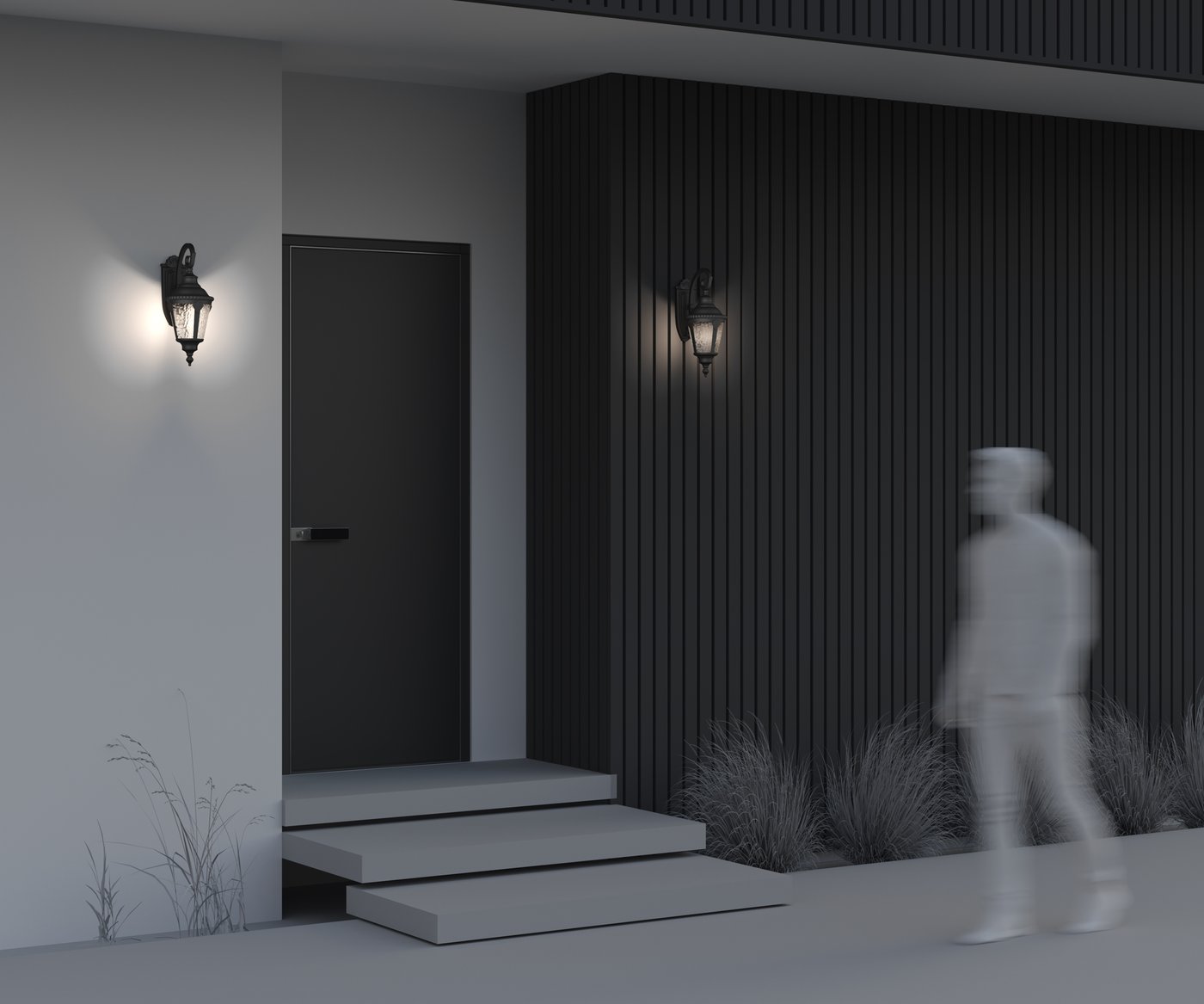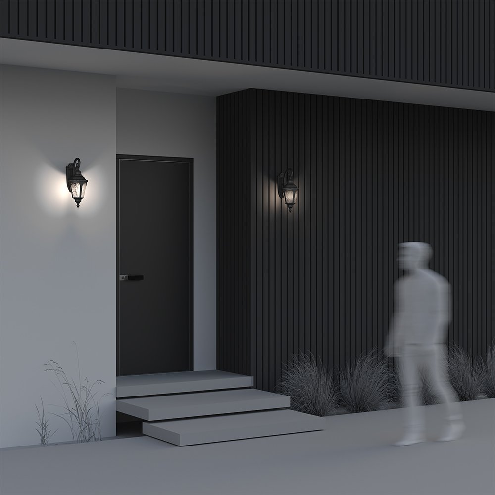 Настенное уличное бра с декоративным кронштейном и вытянутым плафоном выполнено в классической форме садового фонаря. В серии Maytoni Goiri корпус из алюминиевого сплава с покрытием «бронза антик» защищён от коррозии, а фактурное стекло смягчает свет и скрывает источник. При включении поток равномерно распределяется через гранёные панели, создавая основное освещение входной группы или террасы без резкого ослепления. Патрон E27 рассчитан на лампу мощностью до 60 Вт, что позволяет подобрать яркость под площадь участка и высоту установки. Степень защиты IP44 обеспечивает устойчивость к влаге и пыли при эксплуатации на фасаде. Монтаж на планку фиксирует бра вплотную к стене и сохраняет стабильность конструкции при перепадах температуры.