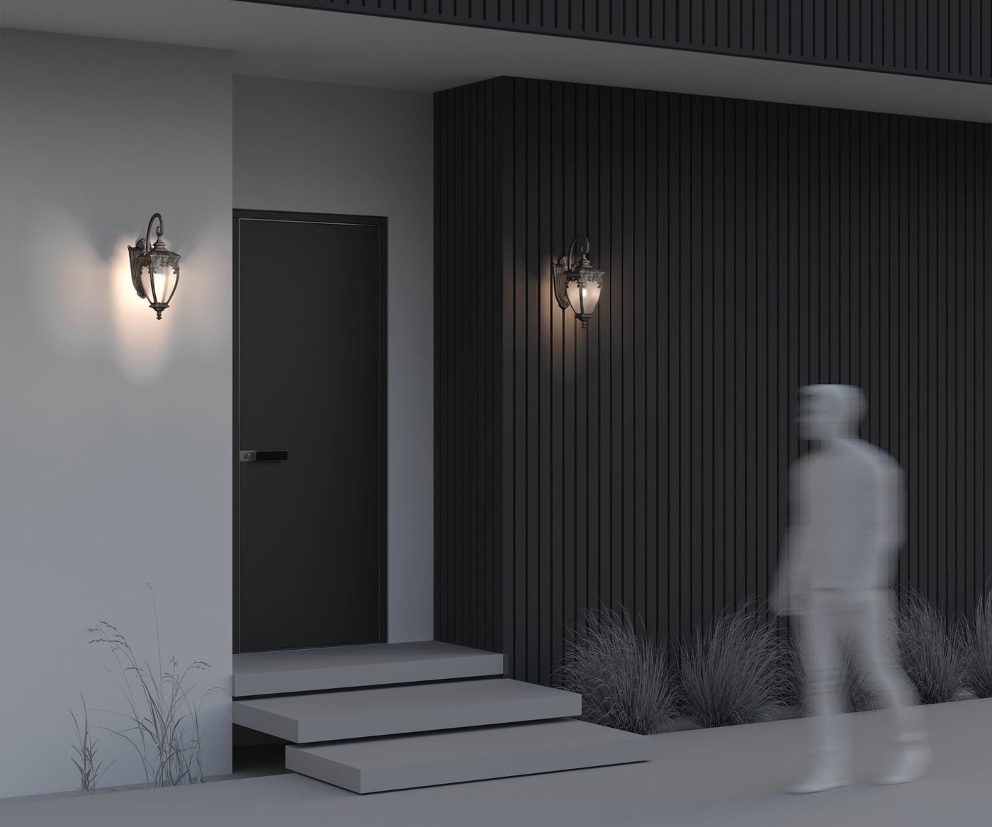Настенный уличный светильник в классическом корпусе с изогнутым кронштейном формирует мягкое рассеянное свечение вокруг фасада. В коллекции Fleur от Maytoni модель выполнена из алюминия в отделке чёрный с золотом и оснащена стеклянным плафоном с эффектом пузырьков, благодаря которому свет от лампы преломляется и становится менее резким. При установке у входной двери или на террасе светильник создаёт фоновый свет, подсвечивая зону подхода и выделяя архитектурные детали без слепящего эффекта при взгляде сбоку. Патрон E27 позволяет использовать лампу мощностью до 60 Вт, выбирая нужную яркость и температуру света под конкретную задачу. Степень защиты IP44 обеспечивает устойчивость к брызгам и пыли, что важно для эксплуатации на открытом воздухе. Алюминиевый корпус рассчитан на перепады температуры и защищён от коррозии, сохраняя внешний вид в условиях улицы.