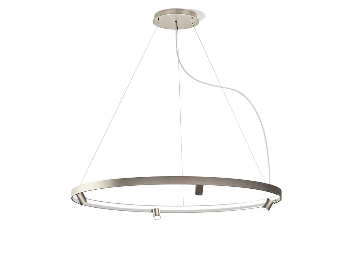 Подвесной светильник для интерьера с прямым и непрямым световым излучением и поворотным акцентным светом. Гнутая экструдированная алюминиевая конструкция, окрашенная полиакриловой краской белого, черного, бронзового цвета, матовой латуни или титана. Рассеиватель из экструдированного поликарбоната с опаловым покрытием. Литые под давлением алюминиевые соединения, окрашенные полиакриловой краской. Литые под давлением алюминиевые проекторы, вращающиеся по двум осям, покрытые полиакриловой краской. Отражатели из термопласта с хромированным покрытием. Текстурированные стеклянные экраны. Накладки с антибликовым покрытием из черного термопластичного материала. Стальные подвесные тросы длиной 5 м (196,9"). Силовой кабель длиной 5 м (196,9") из прозрачного ПВХ. Навес Power с потолочным кронштейном из протравленного листового металла и покрытием из полиакриловой краски белого, черного, бронзового цвета, матовой латуни или титана.
