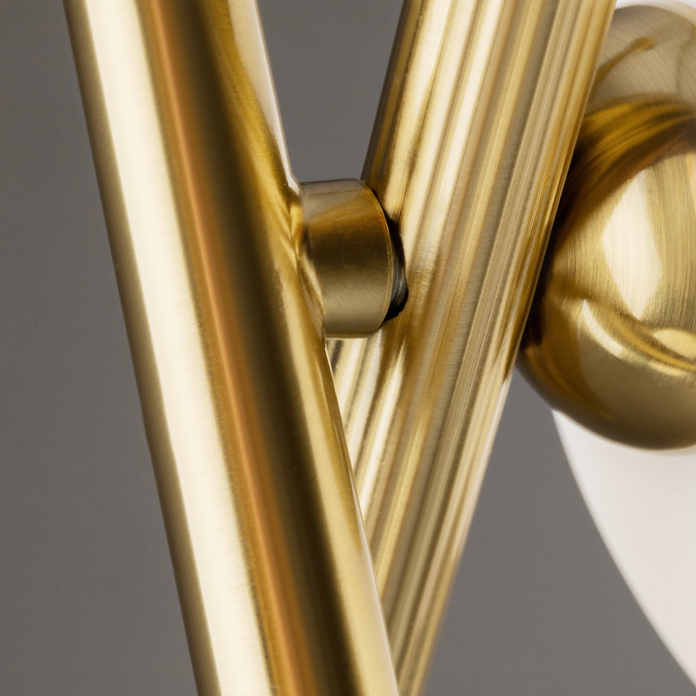 Материал арматуры — рифленый металл, цвет — латунь. Плафоны-сферы из белого матового стекла для мягкого заливающего света. Воздушный образ плафонов, строгие тонкие линии арматуры придадут интерьеру изящество и легкость. Высота подвесов регулируется. Источник света — лампы с цоколем G9.