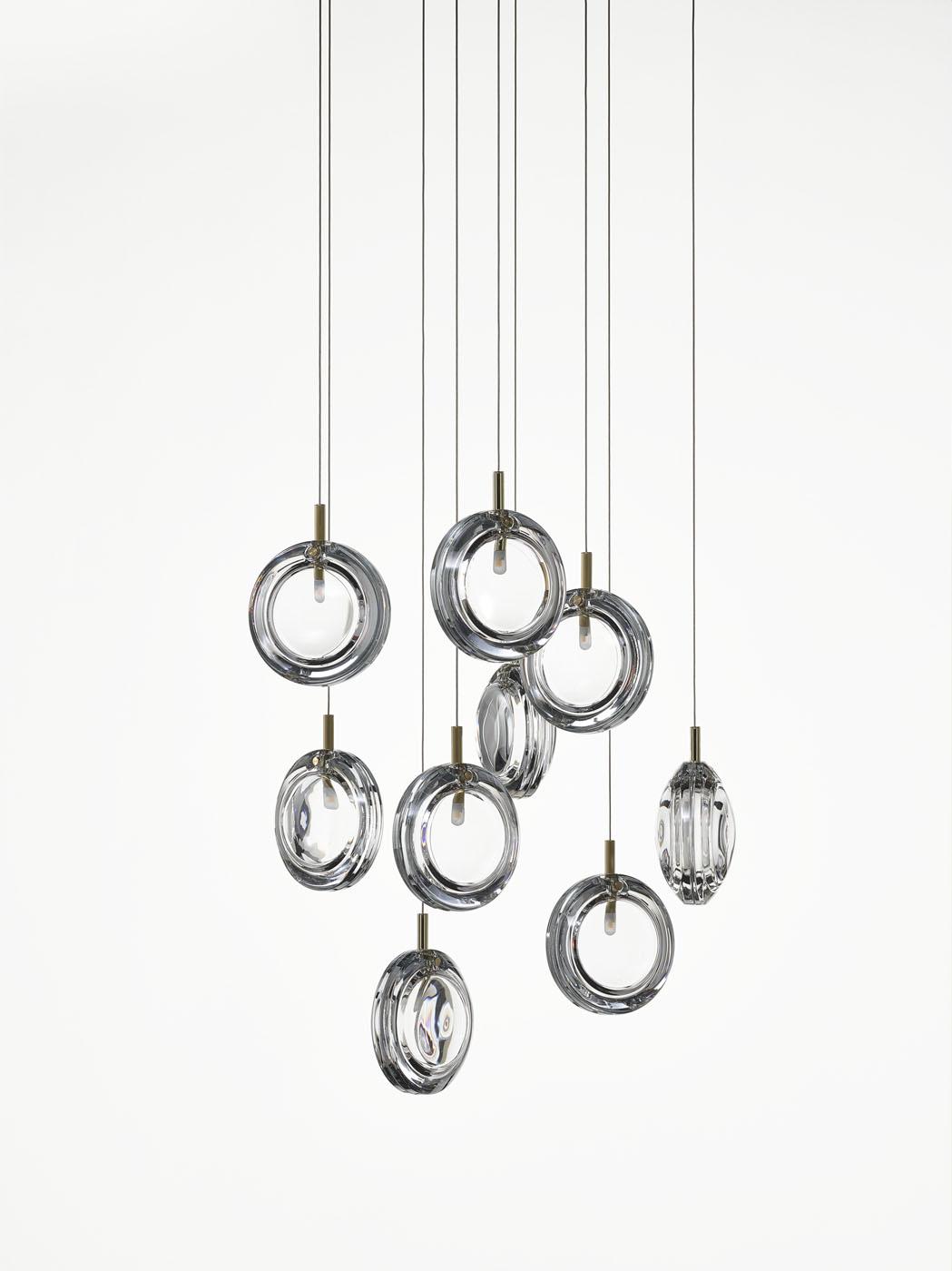 Идеальная оптика из чистого хрусталя. Свет, преломленный через линзу, является основным принципом оптики. Здесь две линзы гармонично инкапсулируют свой внутренний источник, играя симфонию света. Классический прозрачный кристалл компенсируется одним цветом, подчеркивающим его преломление. Гипнотический дизайн, требующий только уникальной композиции и расположения.