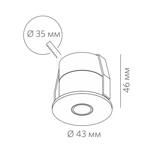 Встраиваемый потолочный светильник из коллекции Log от Led Technology — это компактный точечный модуль с утопленным источником света и лаконичной круглой рамкой диаметром 43 мм. Глубина корпуса 46 мм и посадочное отверстие 35 мм позволяют аккуратно интегрировать модель в гипсокартон или мебельные панели, оставляя на поверхности только тонкий декоративный фланец. Утопленная оптика снижает прямую слепимость: когда человек поднимает взгляд, он видит мягкое световое пятно, а не открытую яркую точку, поэтому светильник подходит для фонового света в коридоре или нише. Тёплая цветовая температура 3000K создаёт спокойную атмосферу и комфортна для жилых помещений в вечернем режиме. Алюминиевый корпус работает как радиатор, отводя тепло и поддерживая стабильность светового потока при подключении к сети 220 В. Степень защиты IP20 рассчитана на сухие зоны, где требуется аккуратная интеграция света без выступающих элементов.