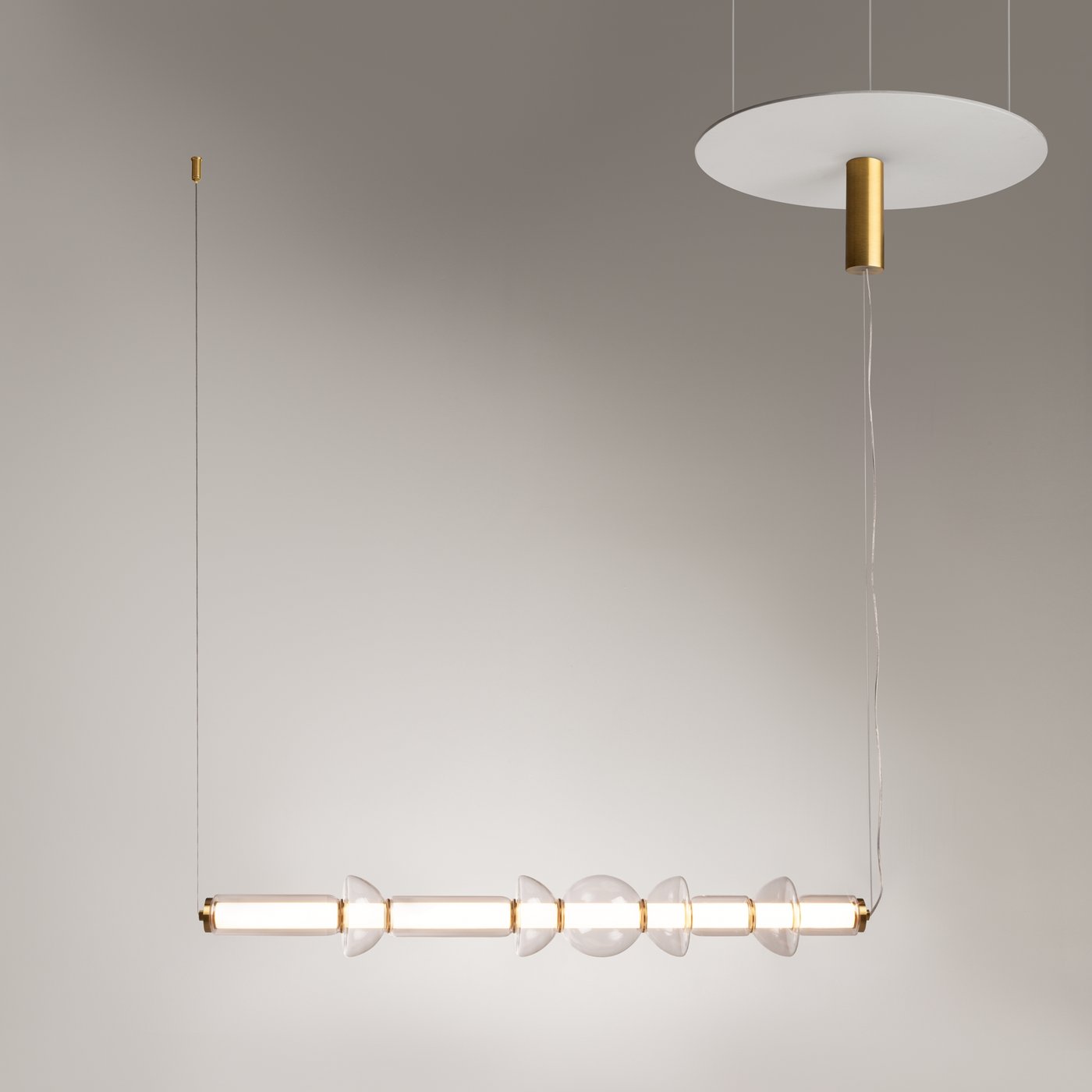 Дизайнерские решения светильников серии Cosmo отсылают к силуэтам космических кораблей и летательных аппаратов из научной фантастики. Длинные стеклянные плафоны со встроенным светодиодным источником света внутри подходят как для основного освещения, так и для формирования декоративных композиций, способных украсить интерьер и рассеять космическую мглу. Светильники изготовлены из прозрачного стекла и металла чёрного или латунного цвета. Модели разных цветов хорошо сочетаются и дополняют друг друга. Ощутимый световой поток 4800 лм предназначен для основного освещения, а в комбинации с другими светильниками создаст мощный источник света для любого помещения. LED-источник света с цветовой температурой 3000К. Светильники с двойным креплением подходят как для вертикального, так и для горизонтального расположения, что делает их идеальными для создания композиций.
