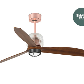 🆔 Люстра-вентилятор медная с деревянными лопастями и SMART управлением медь DECO FAN by Faro Barcelona