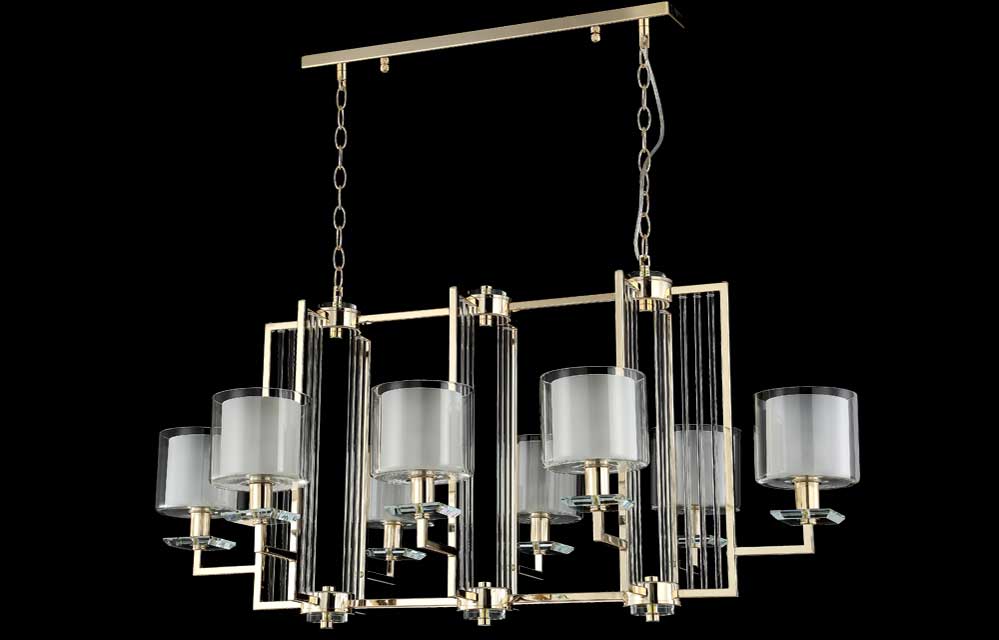 подвесная люстра с восьмью плафонами на золотистой арматуре
