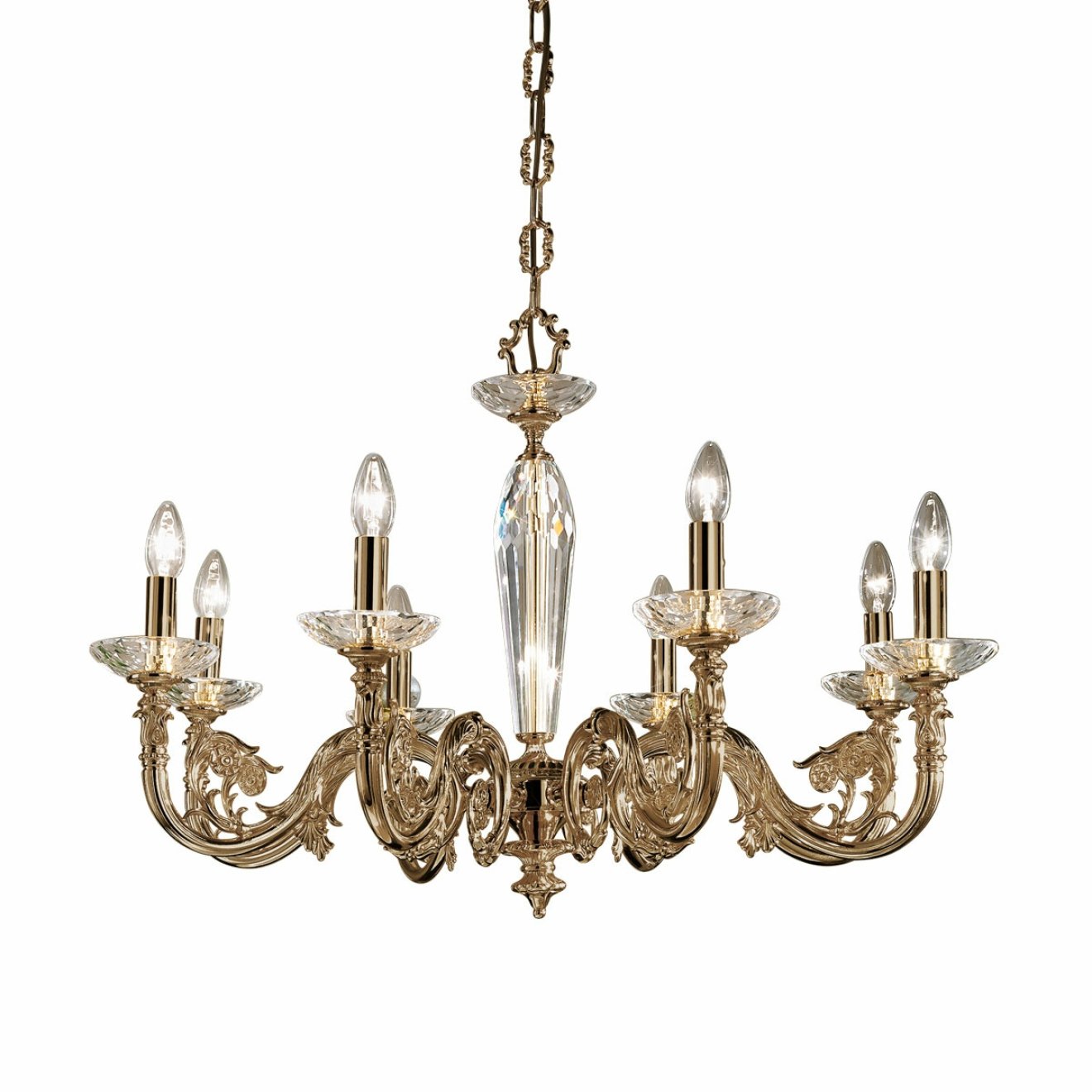Classic beauty in timeless perfection: Finest crystals meet 24 carat gold and create a masterpiece of lighting and a flair of fascination. Our glorious CONTARINI chandelier is a brilliant piece of art. It turns any room into a palazzo.
