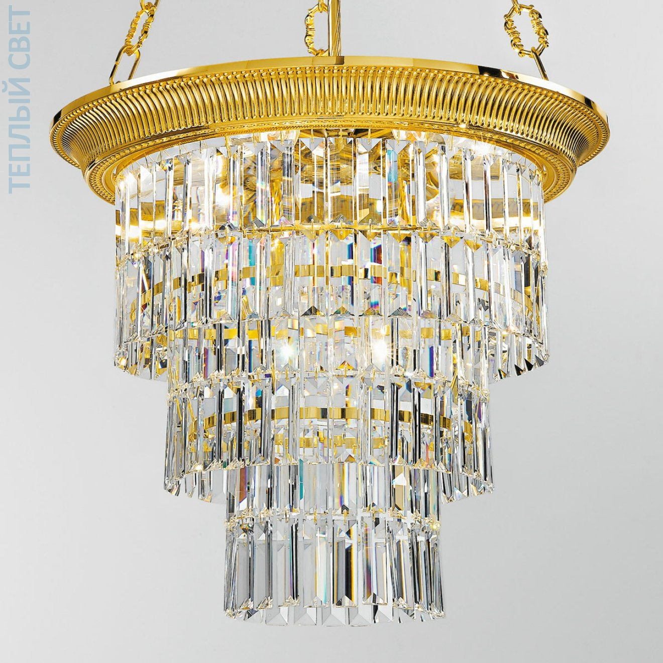 люстра с хрустальными подвесками на золотом основании