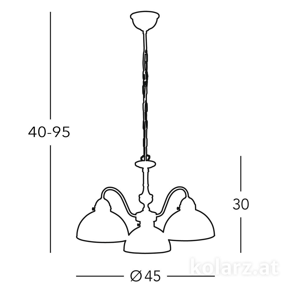 Состаренная латунь, Ø45cm, Высота 30cm, Мин. высота 40cm, Макс. высота 95cm, 3 лампы, E27