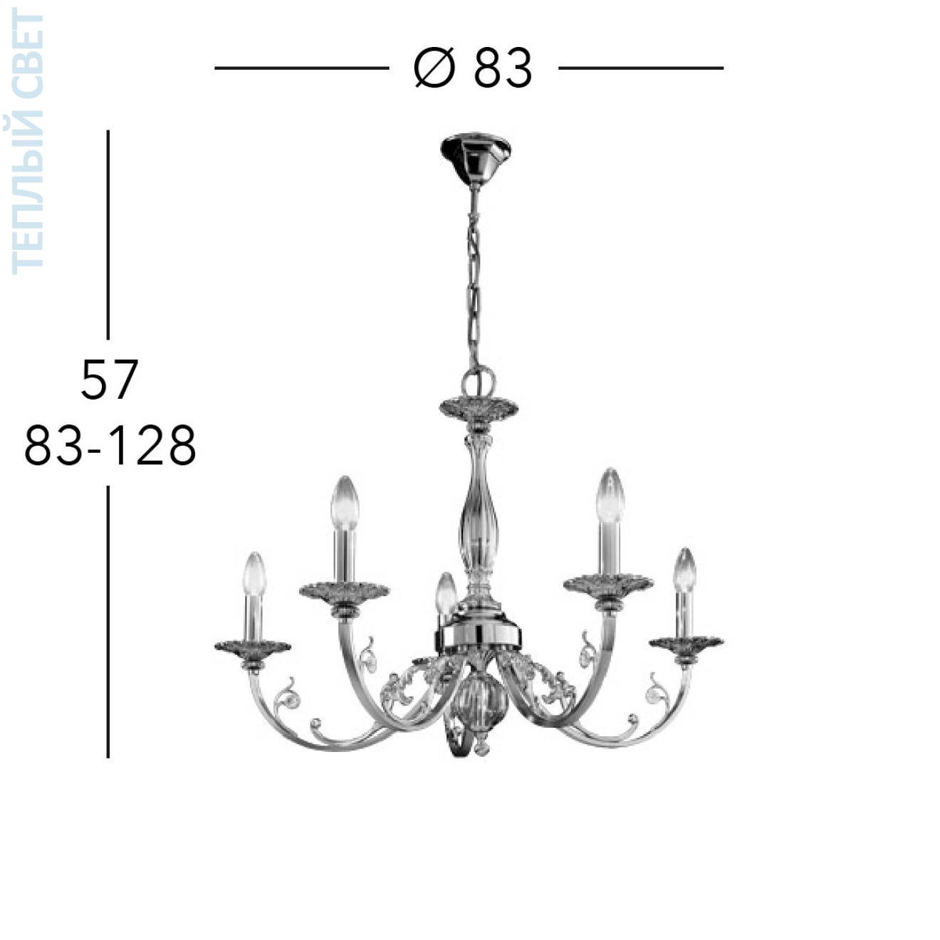 Французское золото, Ø83cm, Высота 57cm, Мин. высота 83cm, Макс. высота 128cm, 5 ламп, E14
