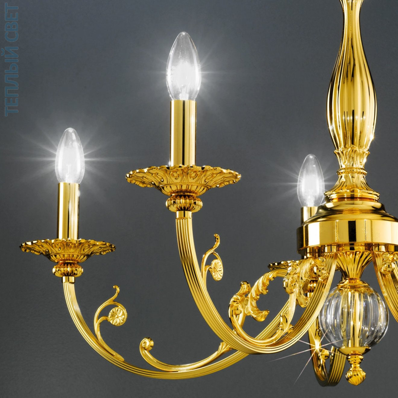 подвесная люстра с пятью рожками цвета золото 24 карата