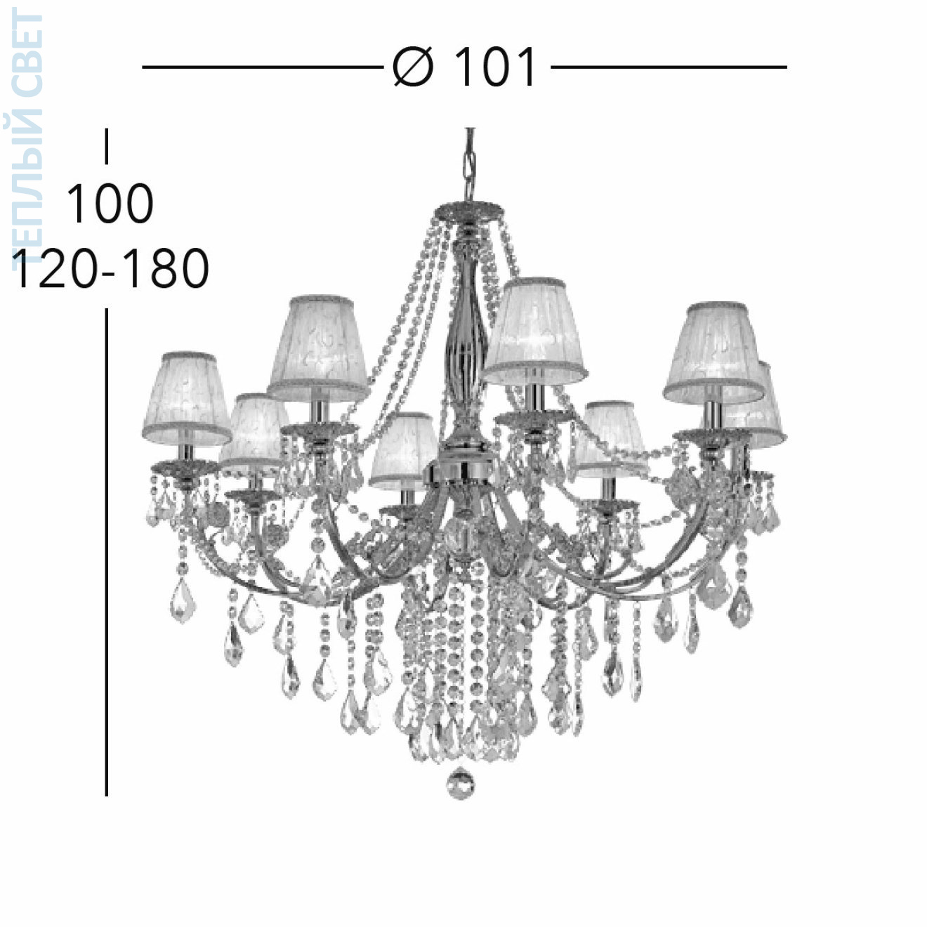 Французское золото, Ø101cm, Высота 100cm, Мин. высота 120cm, Макс. высота 180cm, 8 ламп, E14
