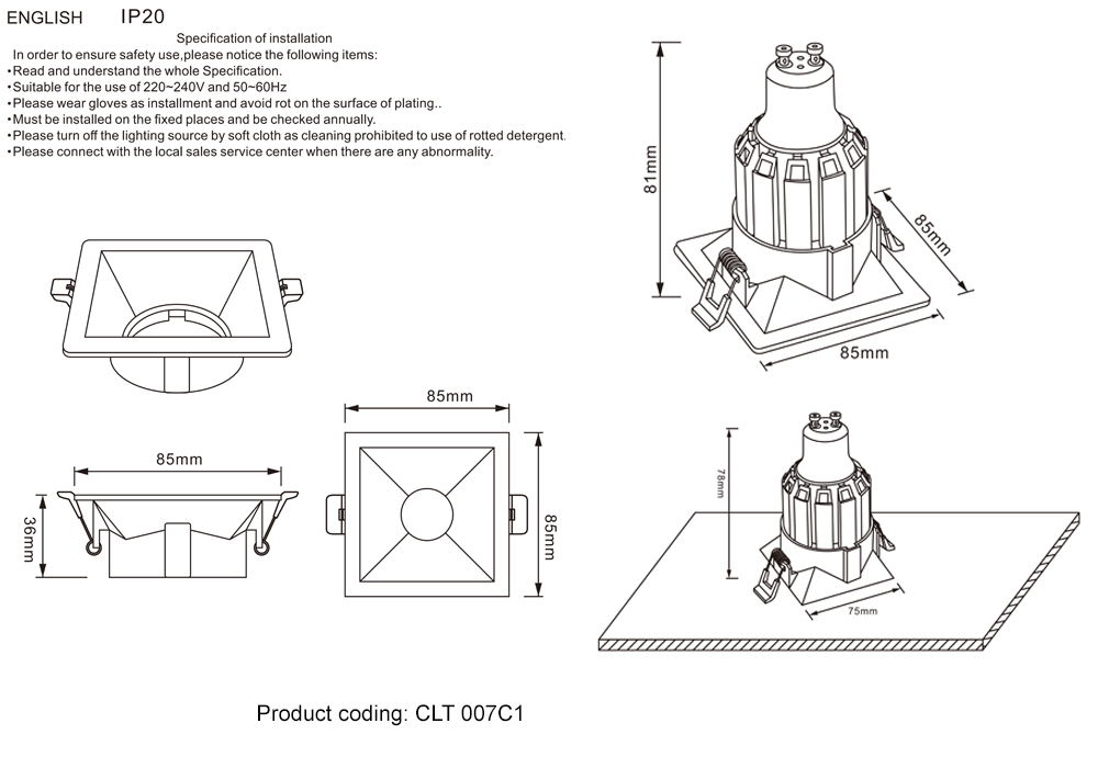 Встраиваемый светильник Crystal Lux CLT 007C1 WH из коллекции Vexor выполнен в современном стиле и предназначен для монтажа в потолочные поверхности. Модель имеет квадратную форму с глубокой посадкой источника света, что подчёркивает лаконичный характер дизайна. Корпус изготовлен из алюминия и представлен в белом цвете, благодаря чему светильник выглядит нейтрально и легко сочетается с различными интерьерными решениями. Размеры изделия составляют 85×85 мм, высота — 36 мм. Конструкция рассчитана на одну лампу с цоколем GU10 мощностью до 50 Вт. Степень защиты IP20 предполагает использование в сухих помещениях, масса нетто — 0,12 кг.