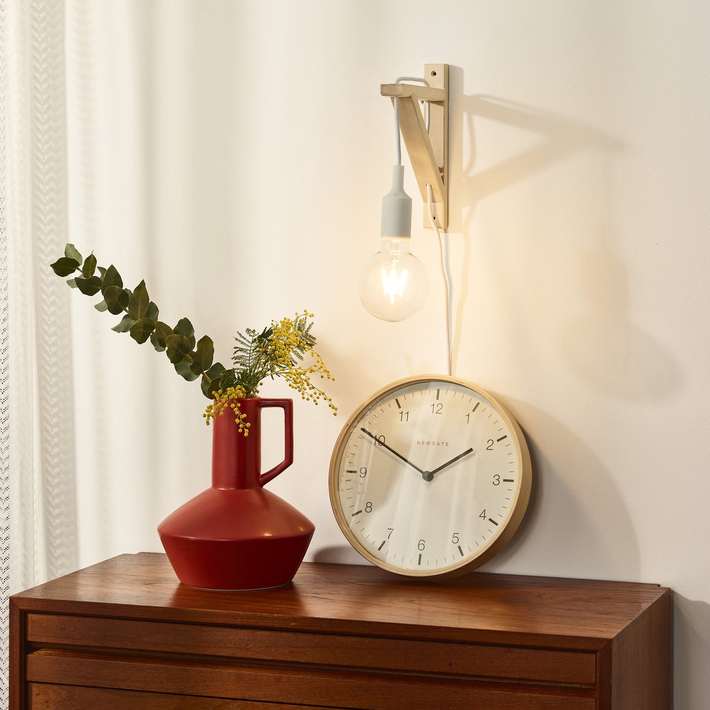 Изящный и лаконичный, он идеально впишется в скандинавский интерьер. Этот настенный светильник состоит из деревянного держателя, в котором декоративно закреплен шнур. Лампа регулируется по высоте. Вы можете выбрать высоту деревянной рамы при установке. Благодаря выключателю на шнуре вы получаете простоту управления. Это открывает дополнительную свободу творчества. Этот настенный светильник очень красиво смотрится в сочетании с лампой накаливания. Таким образом, вы создадите дополнительную атмосферу и станете прекрасным акцентом в вашем интерьере. Патрон совместим со светодиодным освещением.
